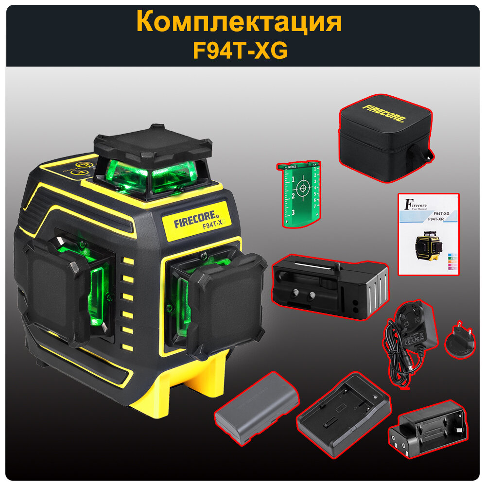 Лазерный уровень/нивелир 360 FIRECORE F94T-XG, Зеленый луч 3D 12 линий с приемником FD30