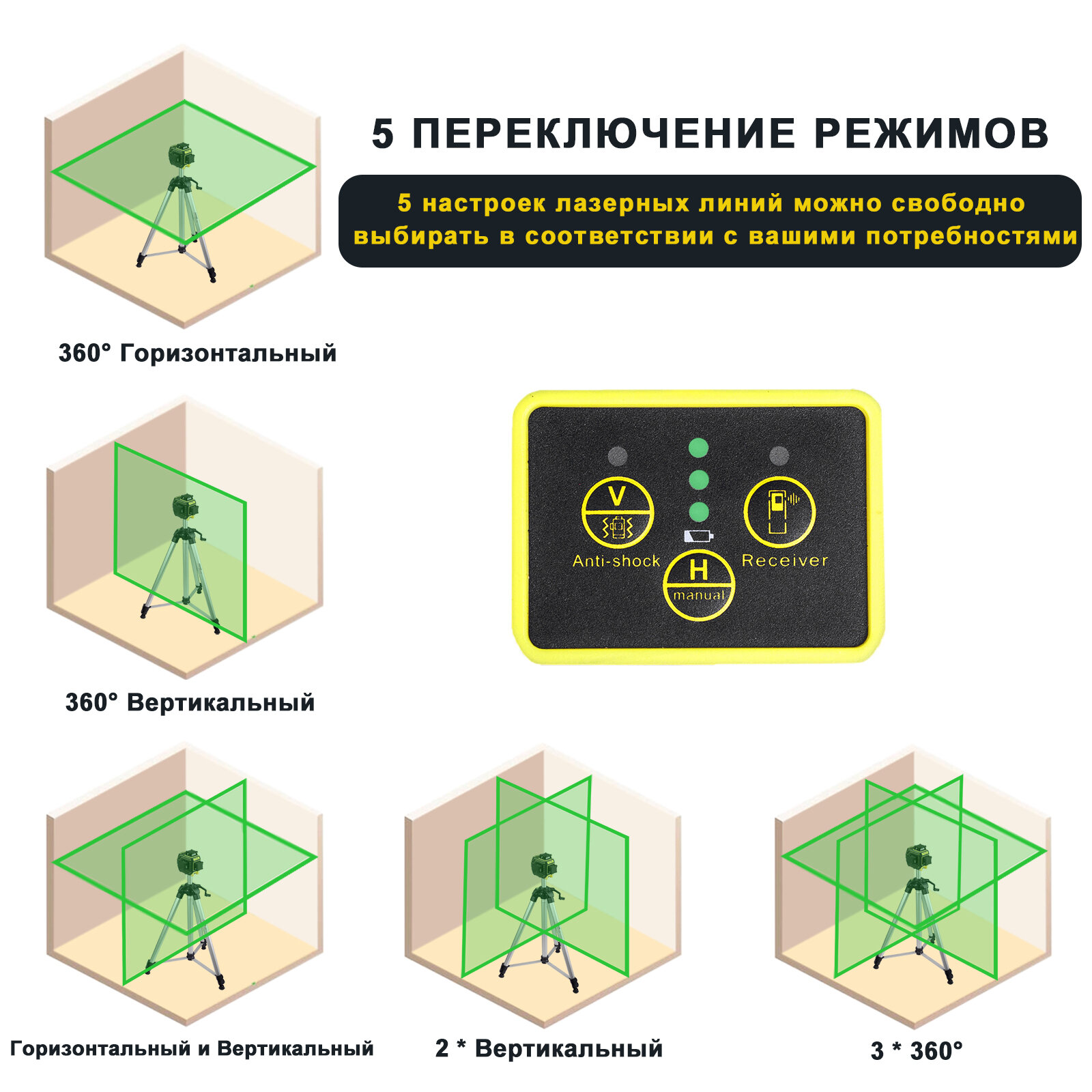 Профессиональный Лазерный уровень (нивелир) LT L16-360A 4D 16 линий.