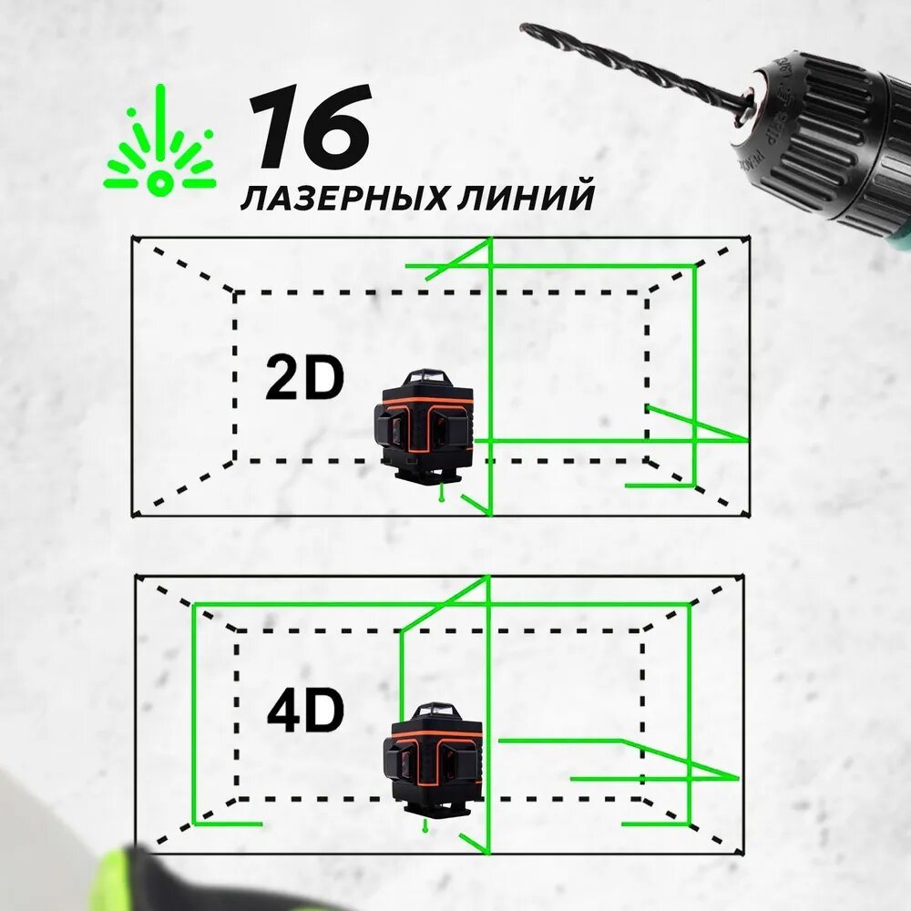Лазерный уровень Hilda 16 линий 360 4D интересное: