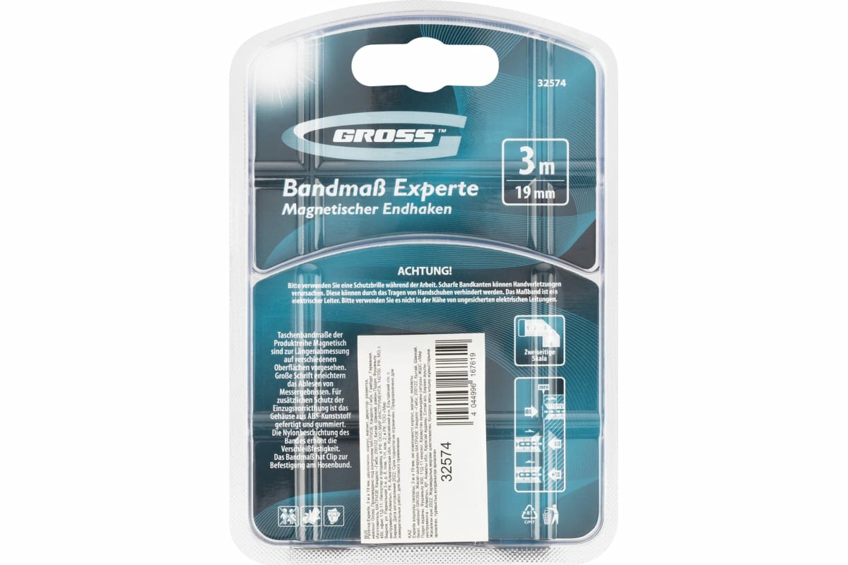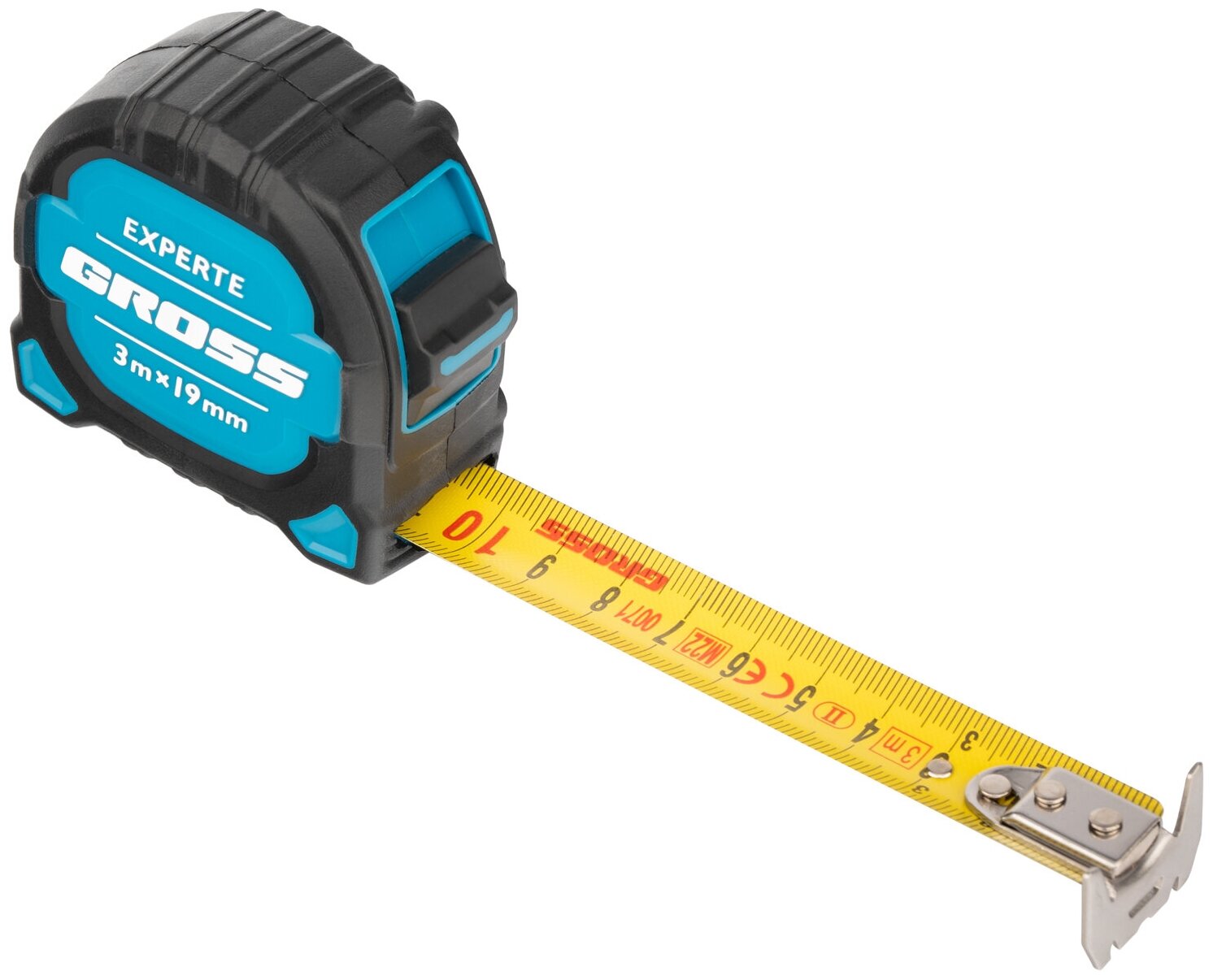 Рулетка Experte, 3 м x 19 мм, двухкомпонентный корпус, магнит, двухсторонняя разметка, нейлон, Gross .