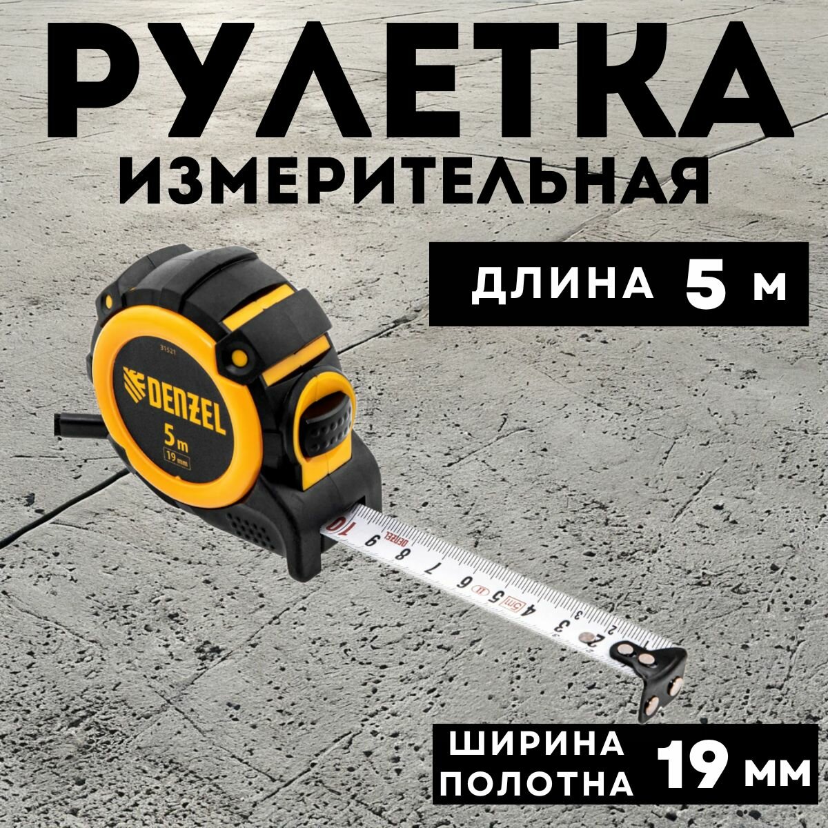 Рулетка 5м х 25мм, обрезиненный корпус, автоматическая фиксация Denzel, 31552