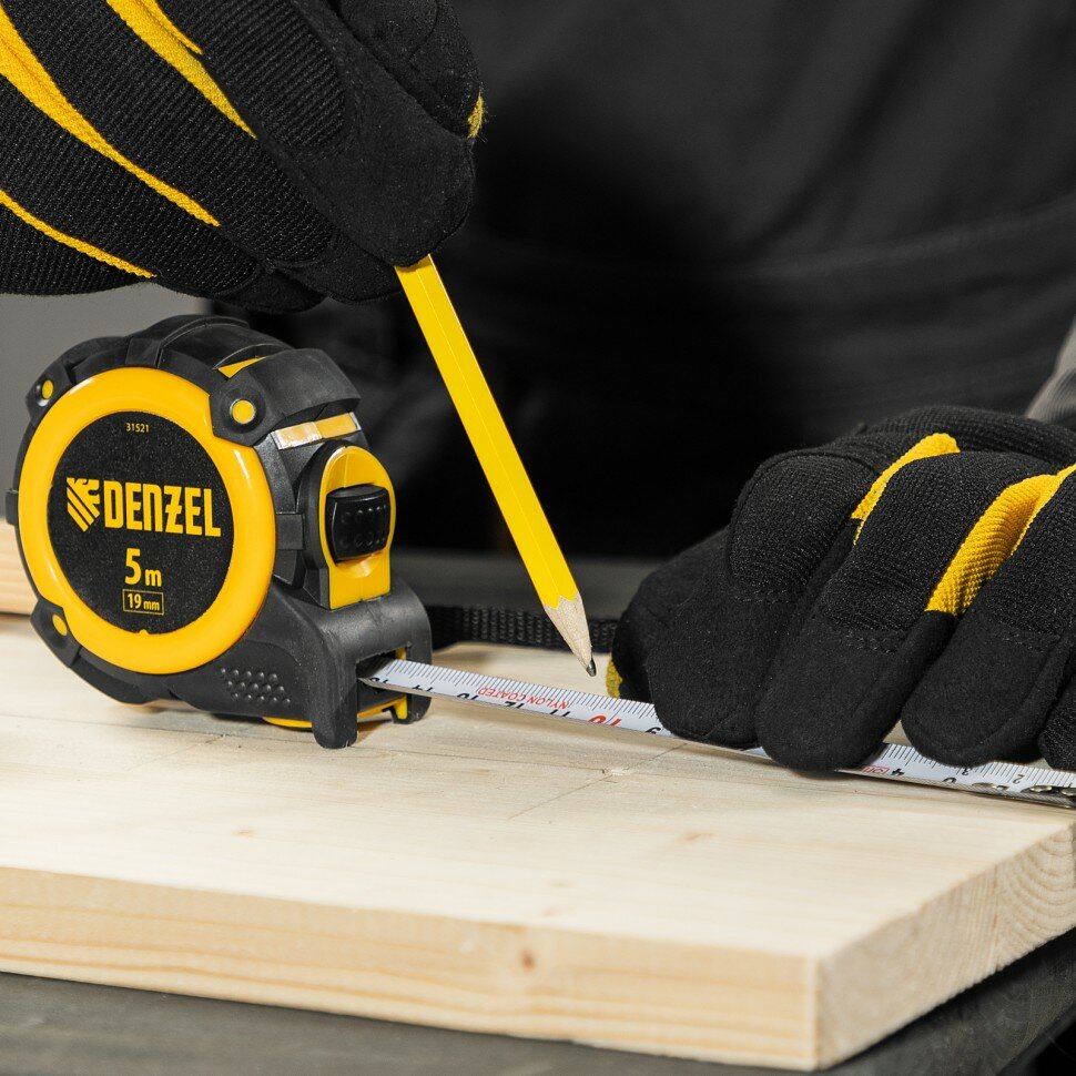 Купить Рулетка Denzel 5м х 19ммавтоматич. фиксац., нейлон. покрытие, магнит. зацеп, двухстор. разметка 31521