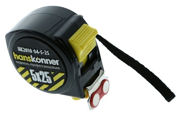 Рулетка 5x25мм, 2 стопа, компактн. корпус, 2 стопа,мощный магнит, Hanskonner интересное: