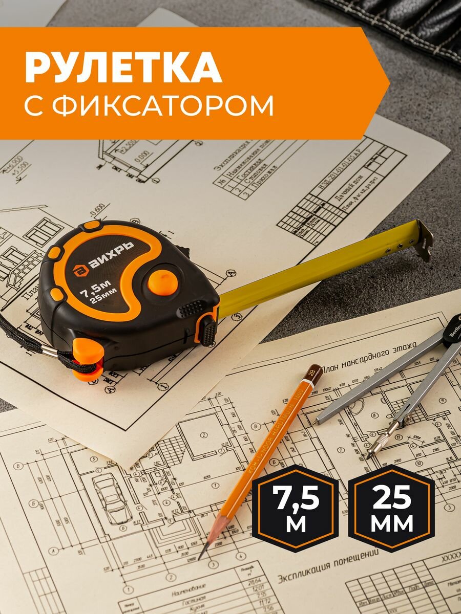 Купить Рулетка 7.5мх25мм Вихрь 73/11/1/4 ( 1шт. )