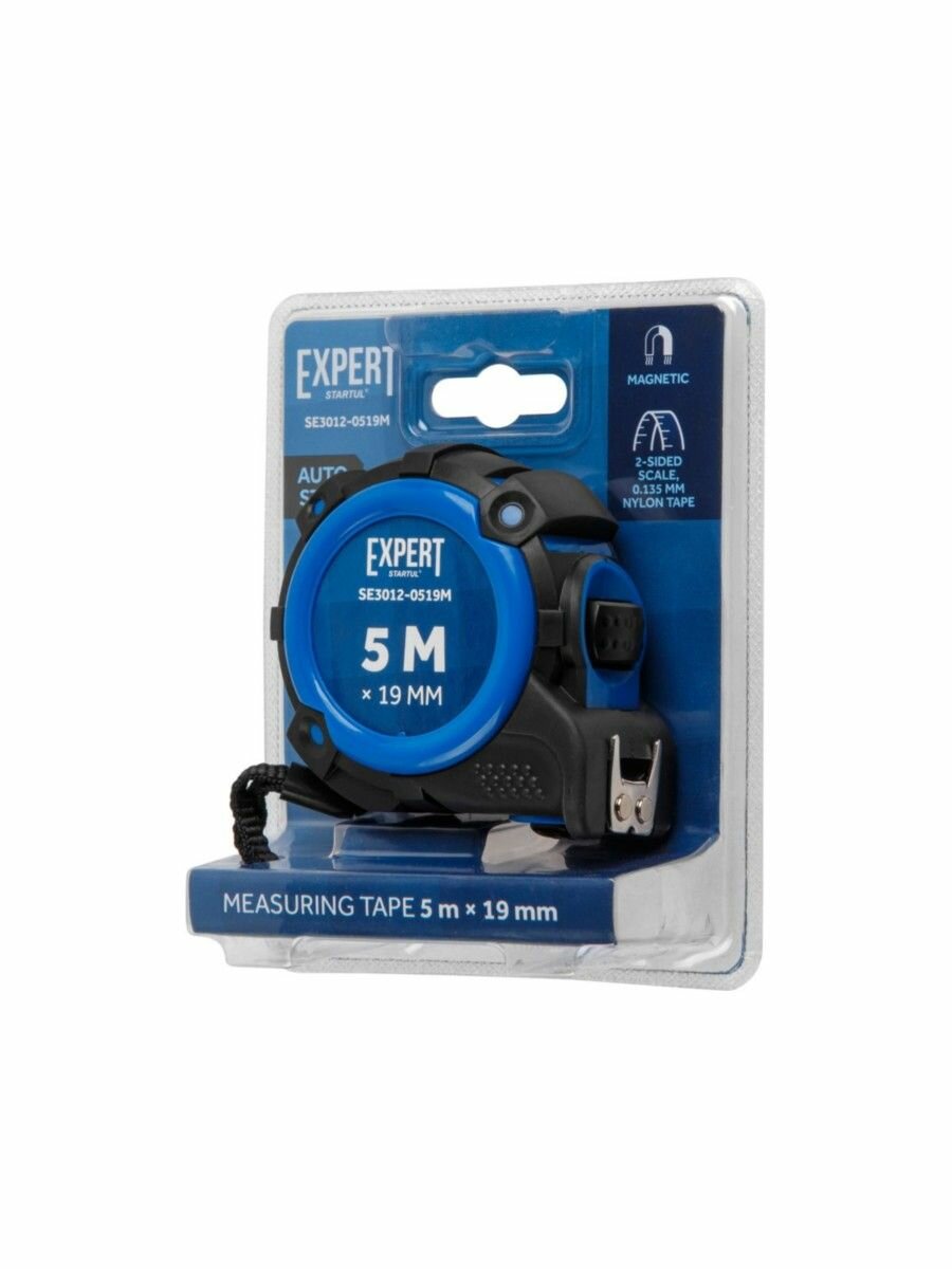 Рулетка строительная 5 м с автостопом EXPERT STARTUL SE3012-0519M ширина 19 мм, двусторонняя шкала, магнит