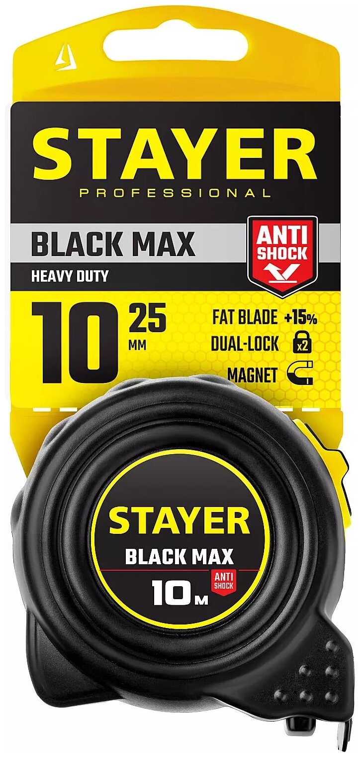 Рулетка с двумя фиксаторами STAYER BlackMax 10м х 25мм 3410-10 интересное: