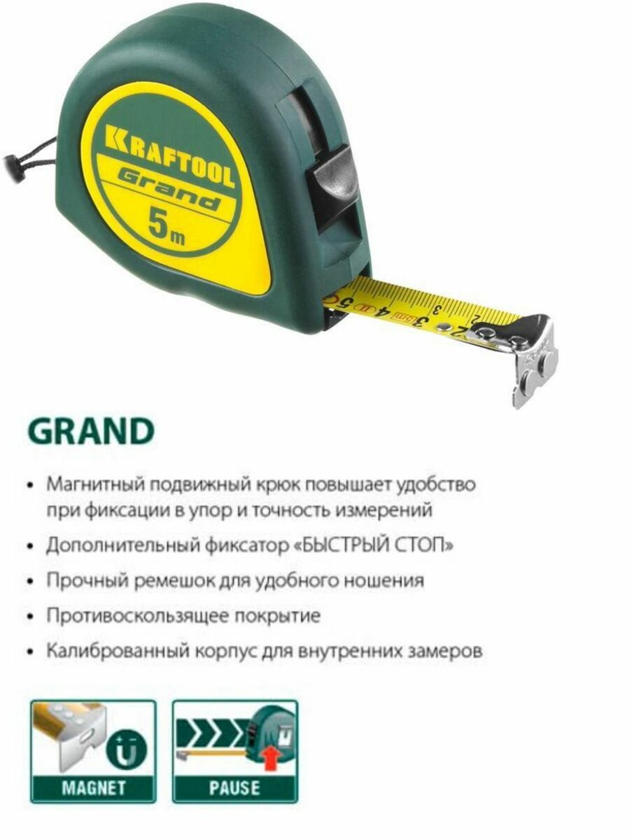 KRAFTOOL 5 м х 19 мм, рулетка GRAND 34022-05-19 интересное: