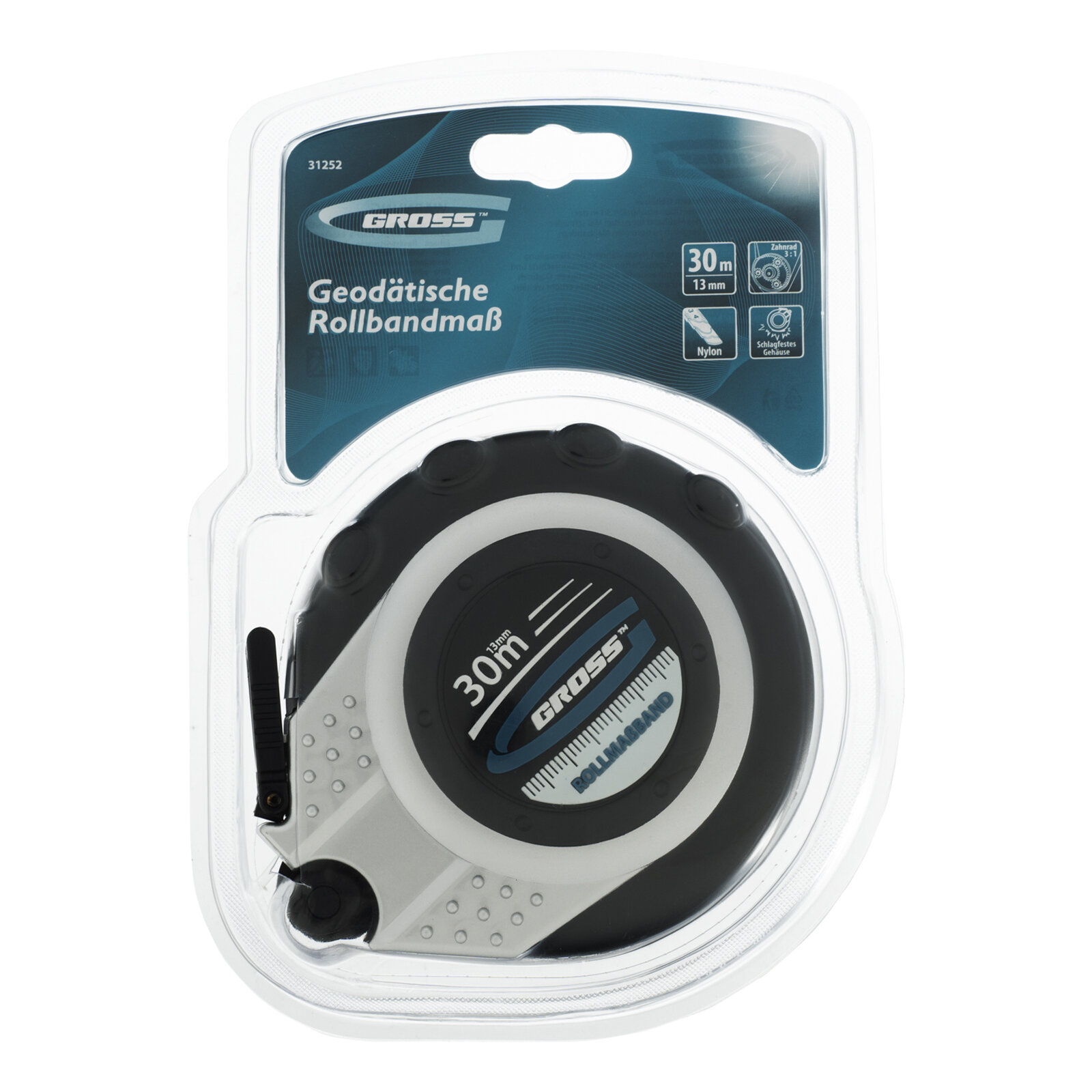 Рулетка геодезическая Gross 30 м х 13 мм закр. корп, металл. лента, нейлон 31252