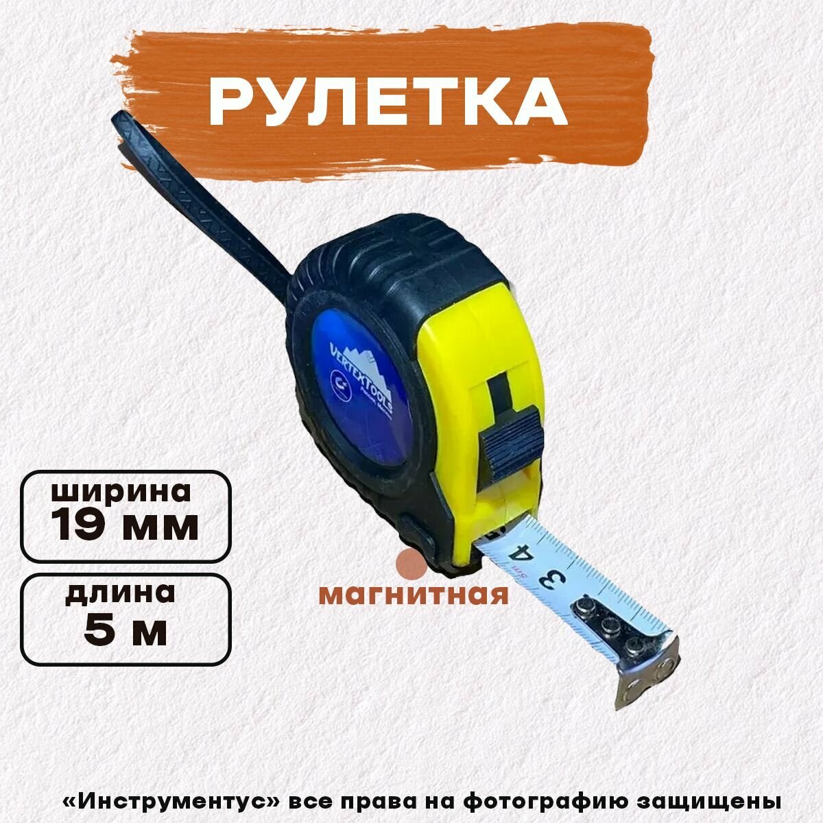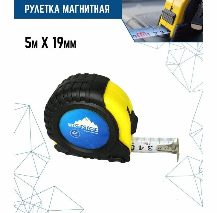 Рулетка строительная 5 м. магнитная прорезиненная VertexTools