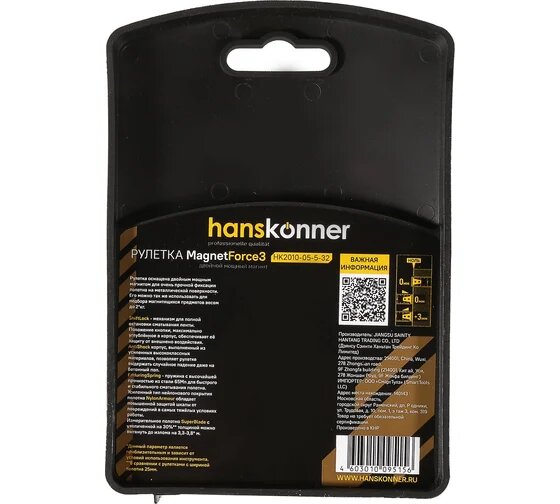 HK2010-05-8-32 Рулетка 8x32, 1 стоп, вылет полотна 3.6-3.8м, магнит держит 2кг, Hanskonner