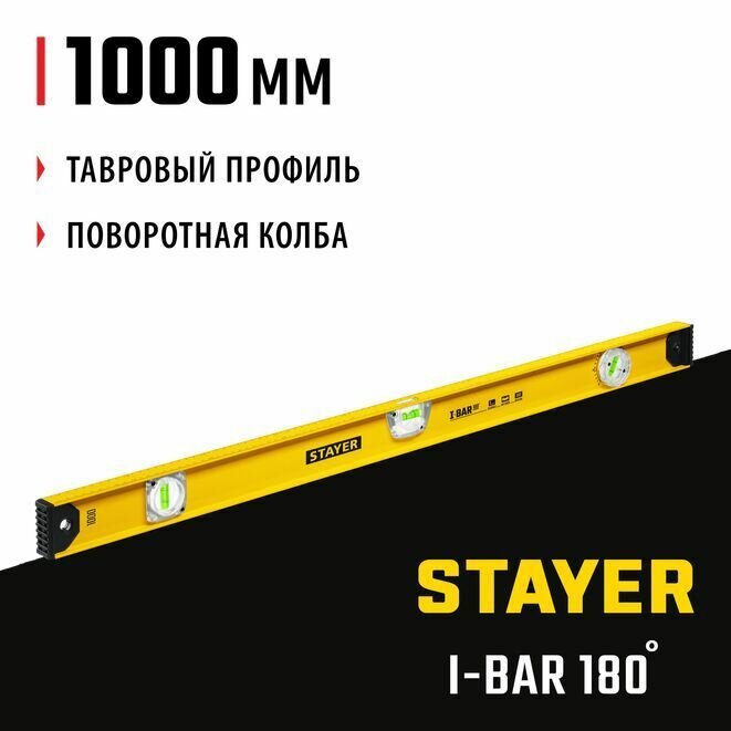 Уровень STAYER I-Bar180 1200 мм двутавровый уровень, 3 глазка, линейка, поворотный глазок,