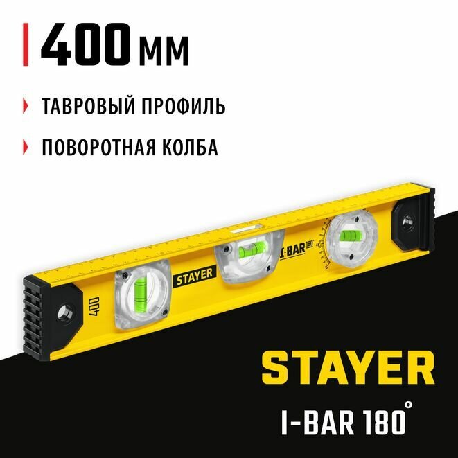 Уровень STAYER I-Bar180 1200 мм двутавровый уровень, 3 глазка, линейка, поворотный глазок,