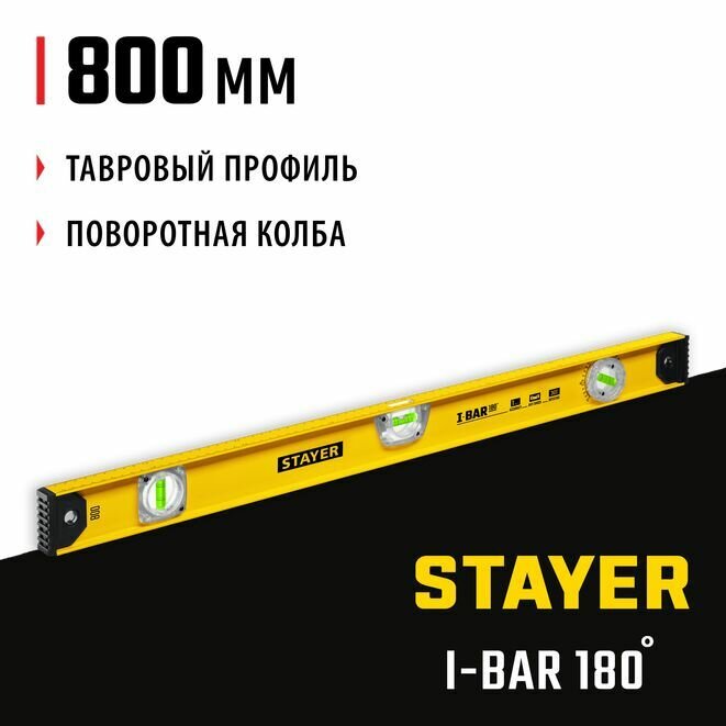 Уровень STAYER I-Bar180 1200 мм двутавровый уровень, 3 глазка, линейка, поворотный глазок,