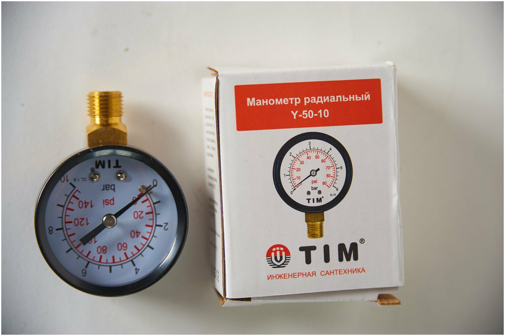 Манометр радиальный 1/4" 10 бар, TIM, арт. Y-50-10