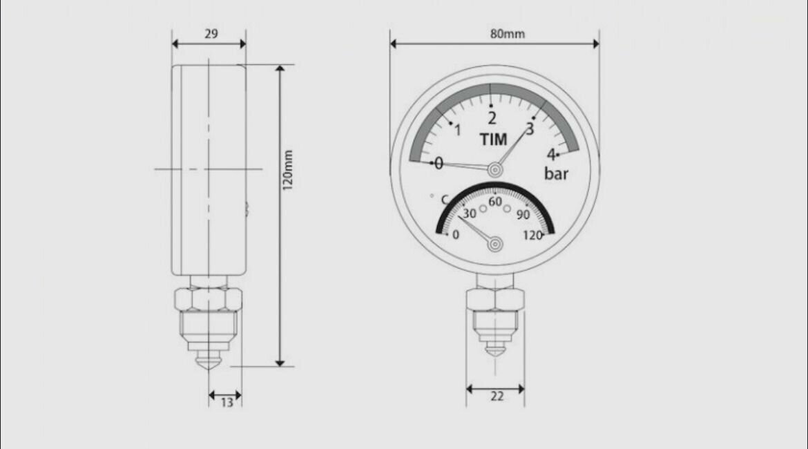 Термоманометр радиальный TIM Y-80-4 1/2" 4 бар интересное: