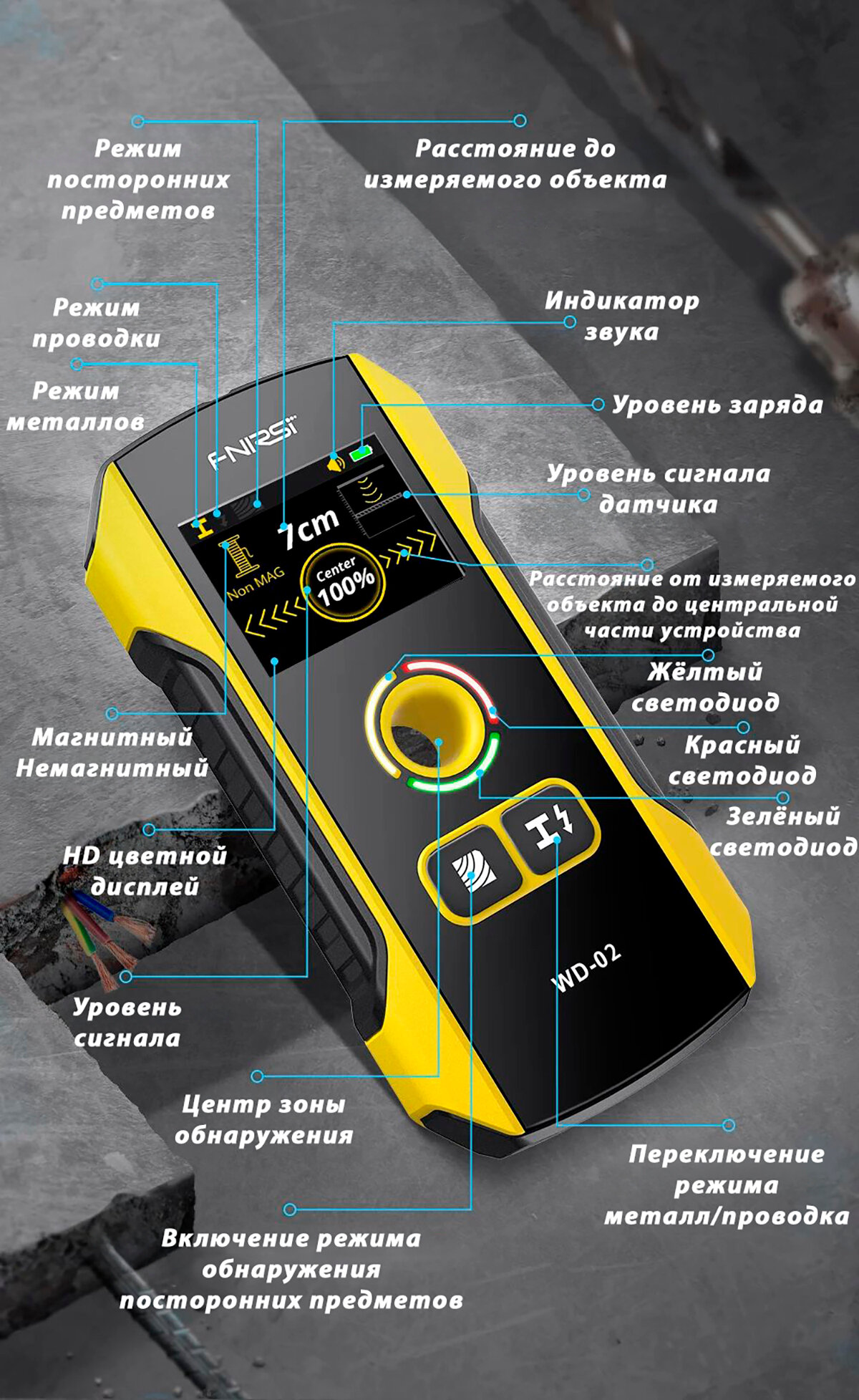 Детектор скрытой проводки и металлов FNIRSI WD-02 / Портативный цифровой индикатор проводки / Трассоискатель интересное: