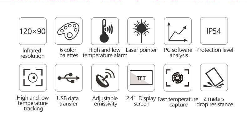 | Дополнительная информация | Цветовая палитра: белая горячая, черная горячая, железо - красная, лава, радуга, радуга высокой контрастности |