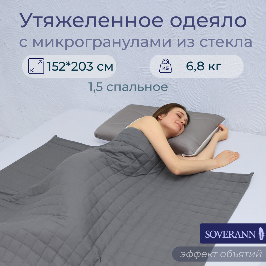 Утяжеленное одеяло для сна SOVERANN 1.5 спальное, 152 х 203 см, вес 6.8 кг интересное: