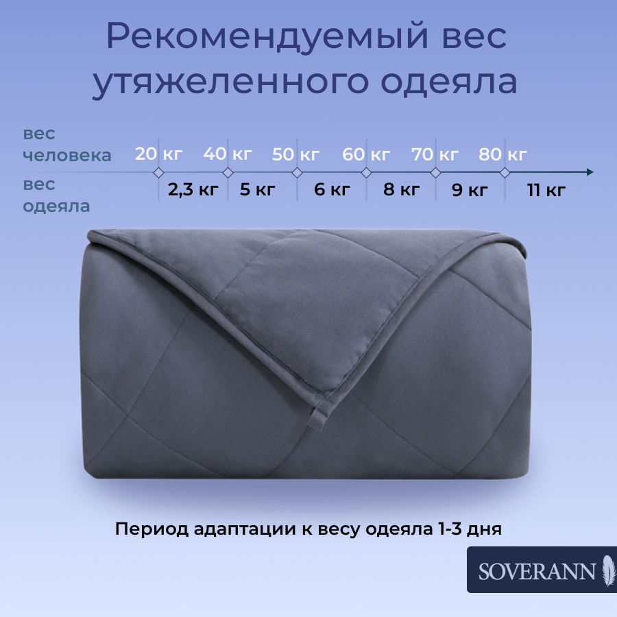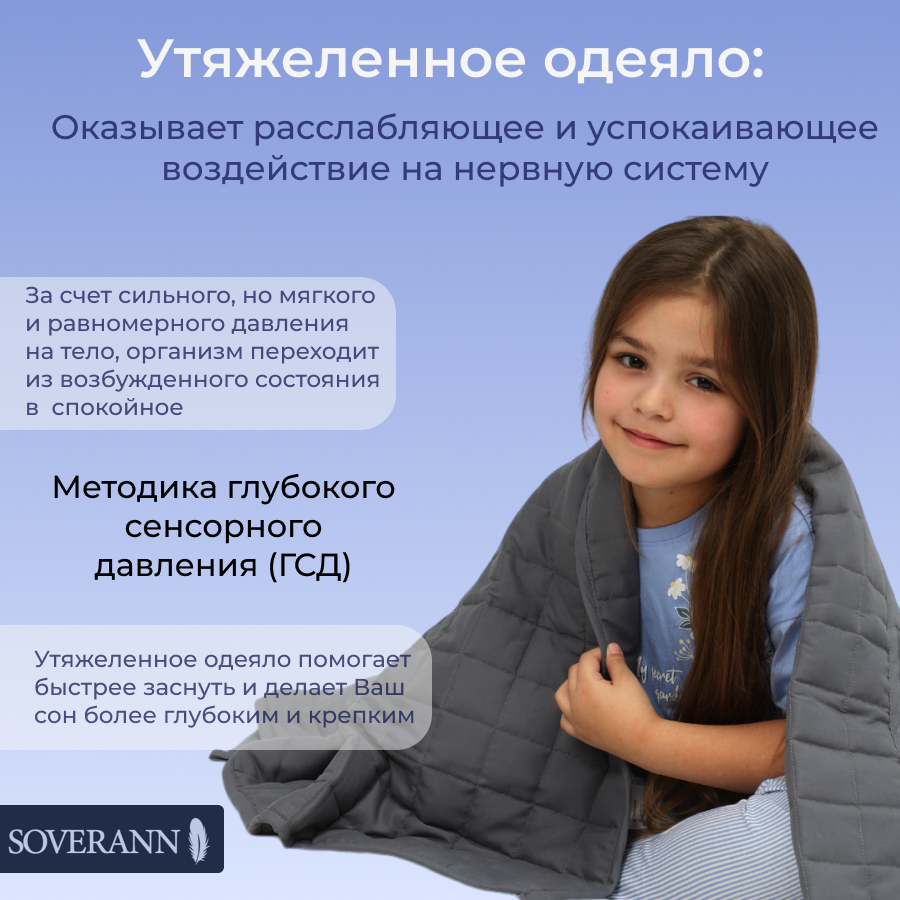 Утяжеленное детское одеяло SOVERANN, 90х122 см, вес 2,3кг интересное: