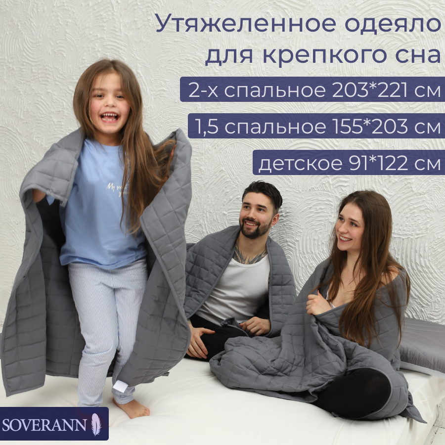 Утяжеленное одеяло для сна SOVERANN 1.5 спальное, 152 х 203 см, вес 6.8 кг