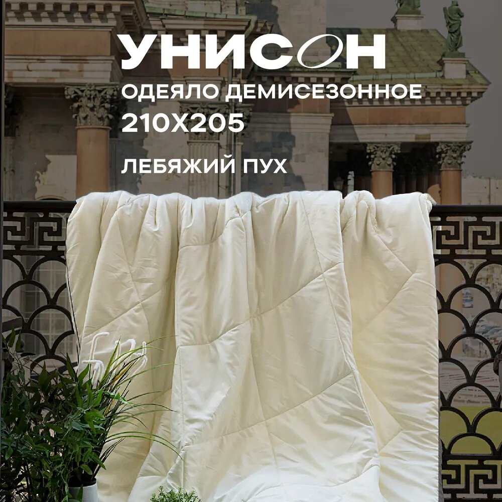 Одеяло 140х205 лебяжий пух/ всесезонное / летнее одеяло /одеяло евро летнее /одеяло 1,5 спальное / пуховое одеяло / одеяло "Унисон" Creative 140х205 лебяжий пух