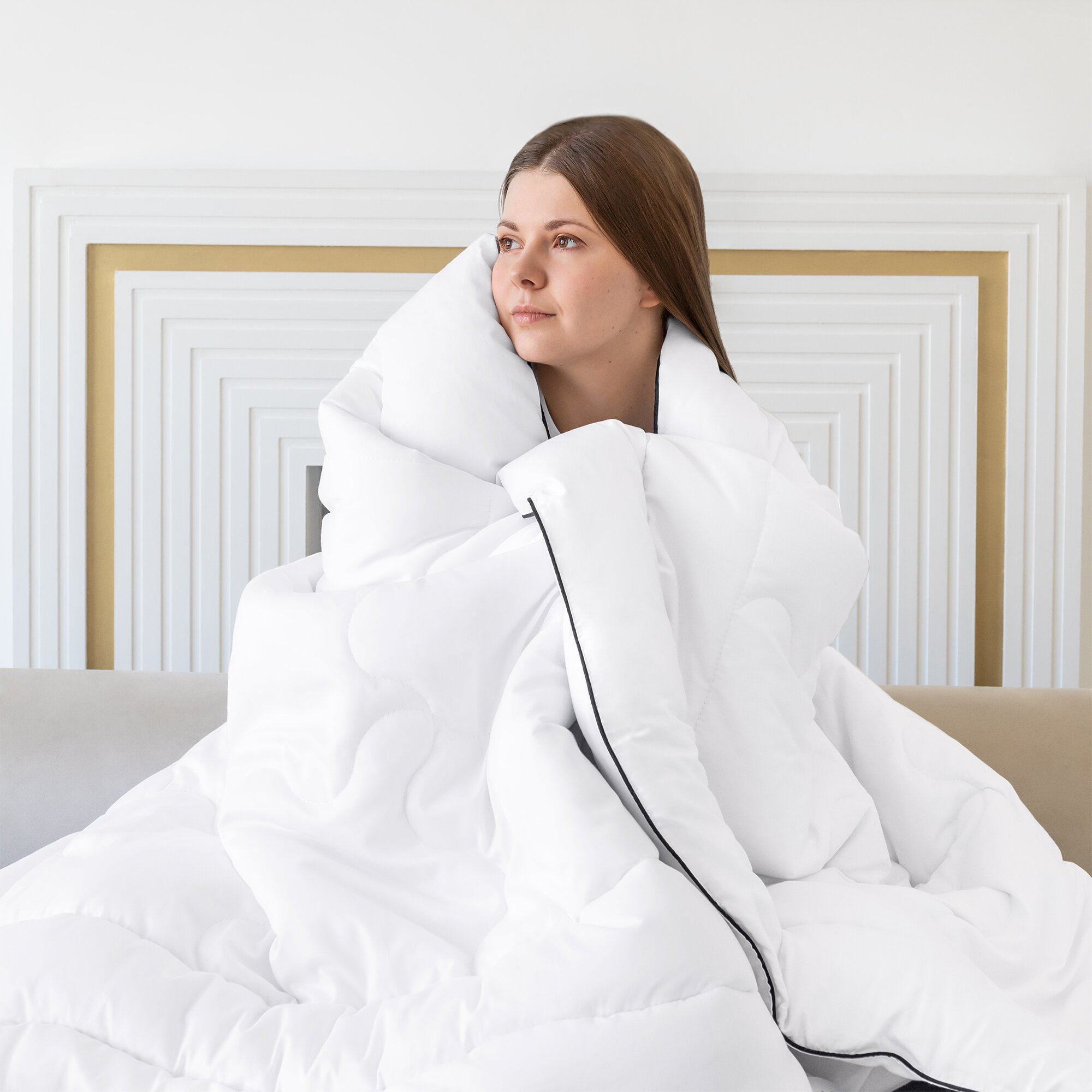 Одеяло Отельное лебяжий пух Кассетного типа 170х205 см, двуспальное 300гр/м2 / Horeca одеяло для отелей и гостиниц