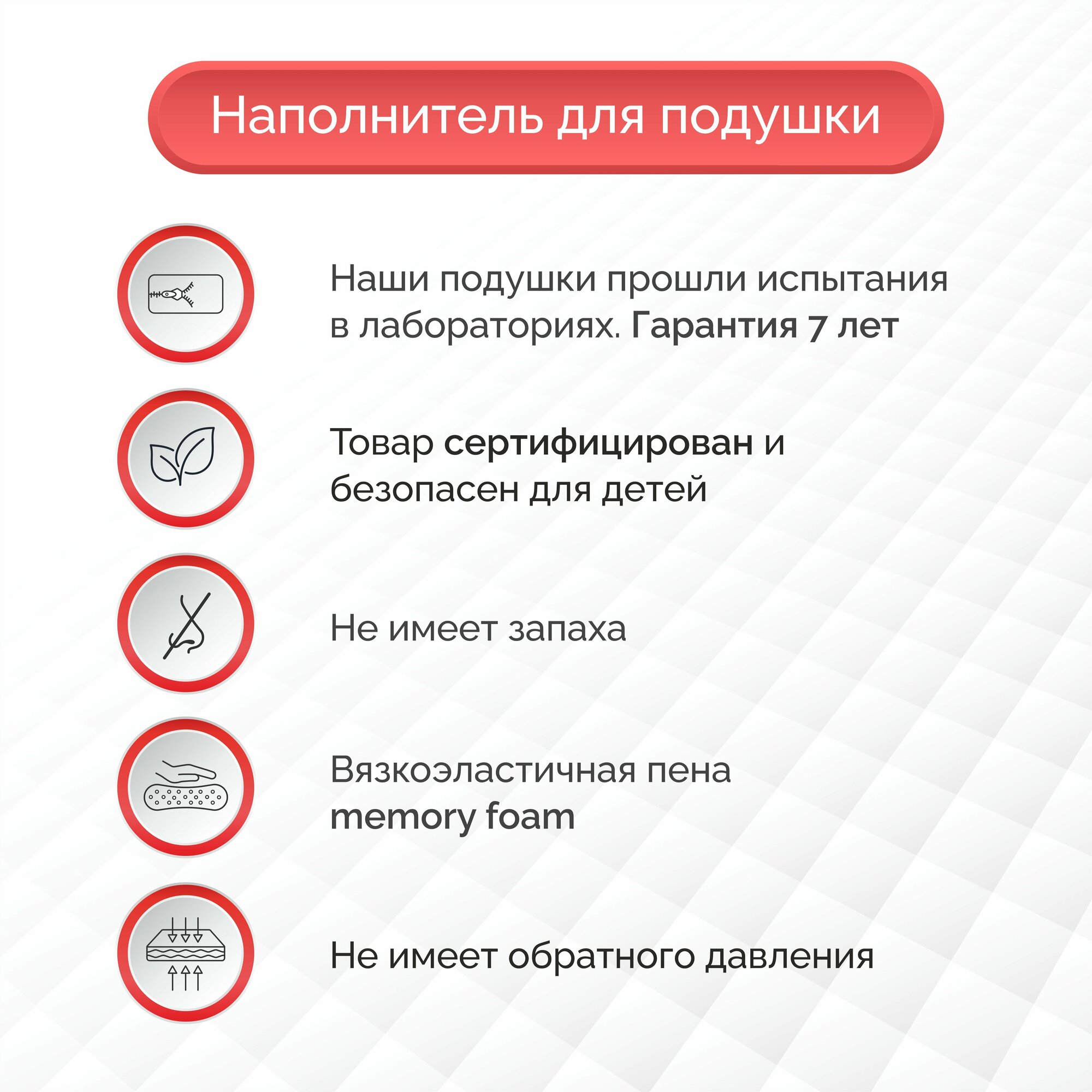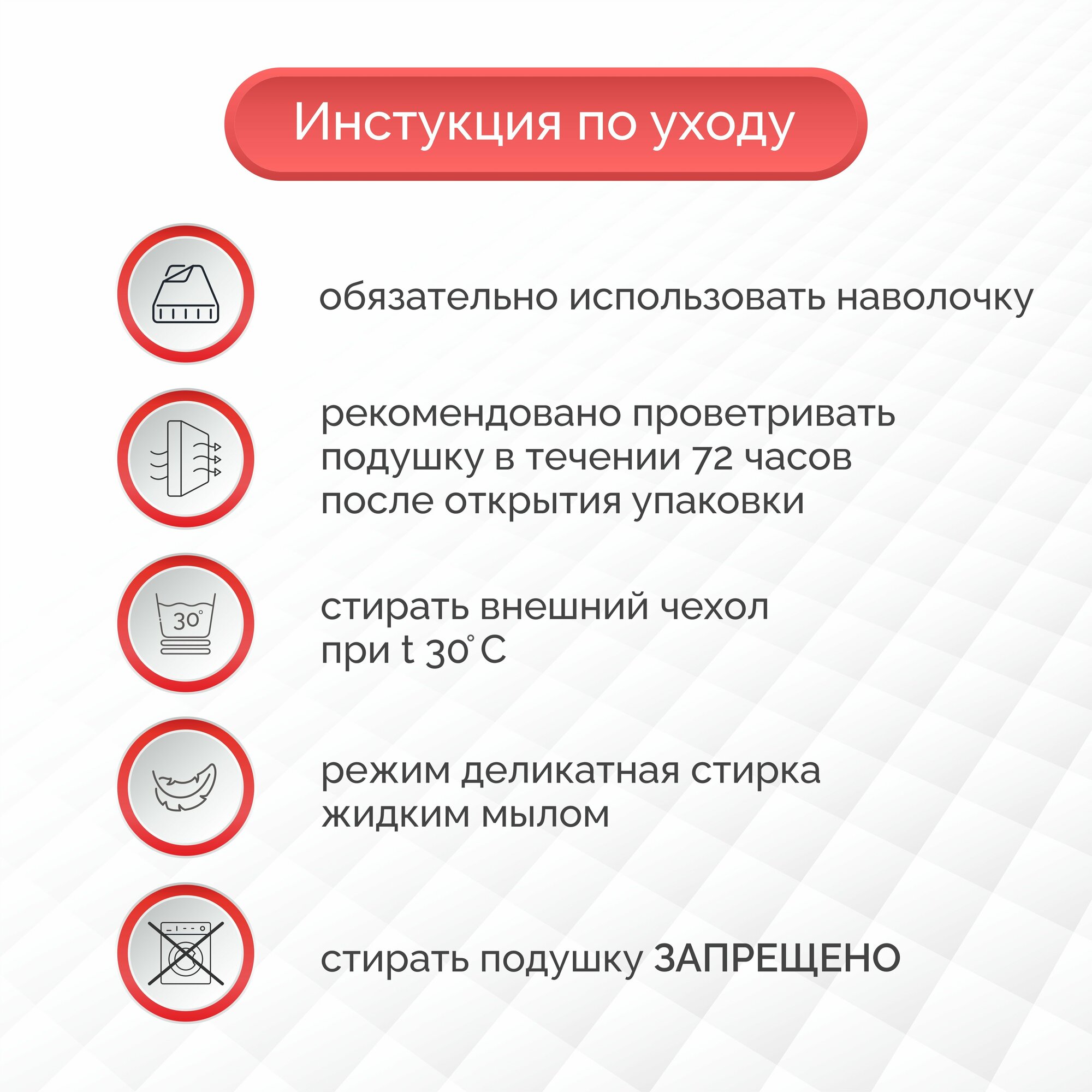 | Особенности | валики разной высоты / гипоаллергенная / клиновидная форма / охлаждающий эффект / против морщин / регулирование количества наполнителя / с кантом / съемный чехол / эффект памяти |