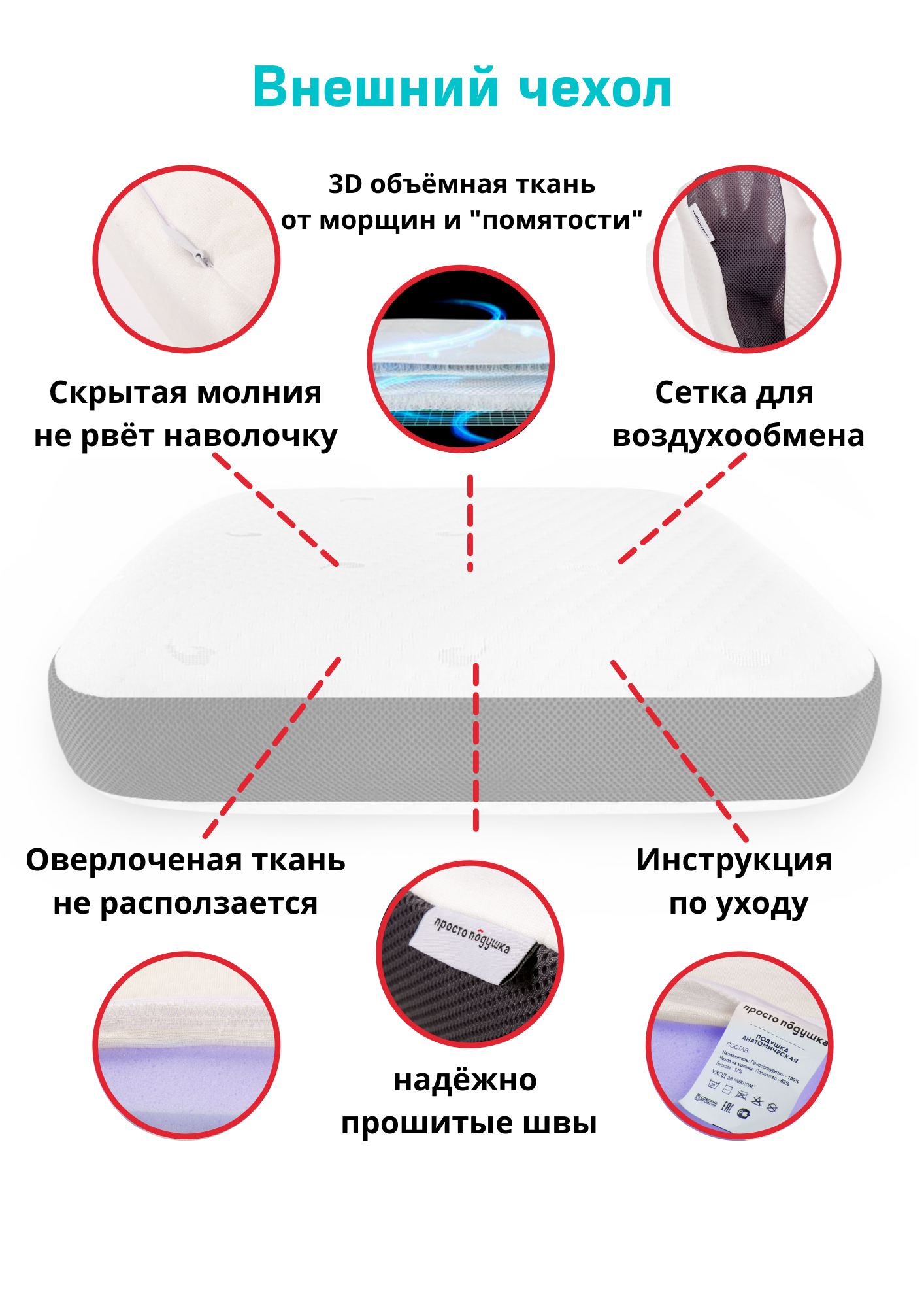 Подушка ортопедическая с эффектом памяти 40х60х13 см "Просто Подушка" №8 мягкая интересное: