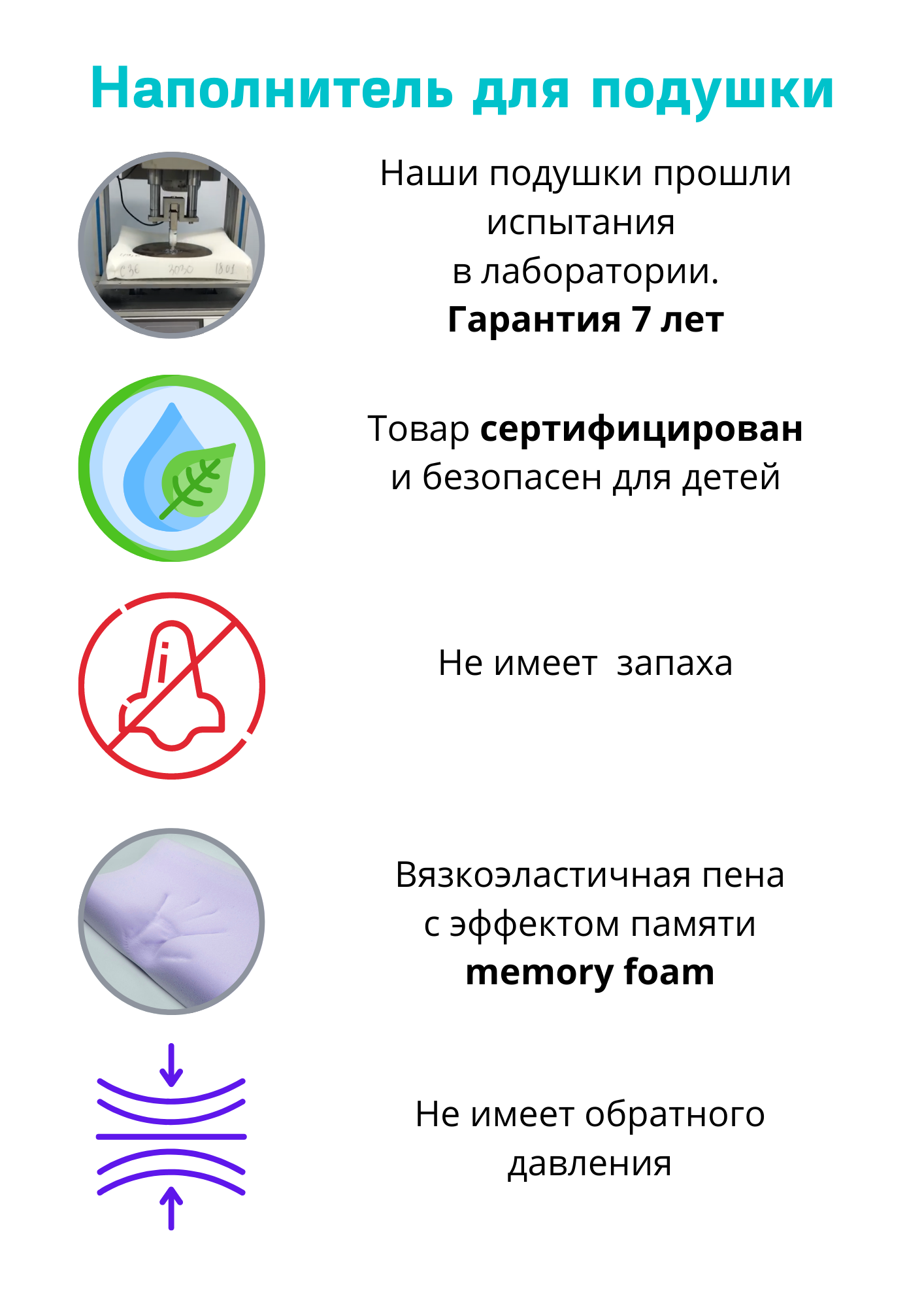 | Особенности | гипоаллергенная / против морщин / съемный чехол / эффект памяти |