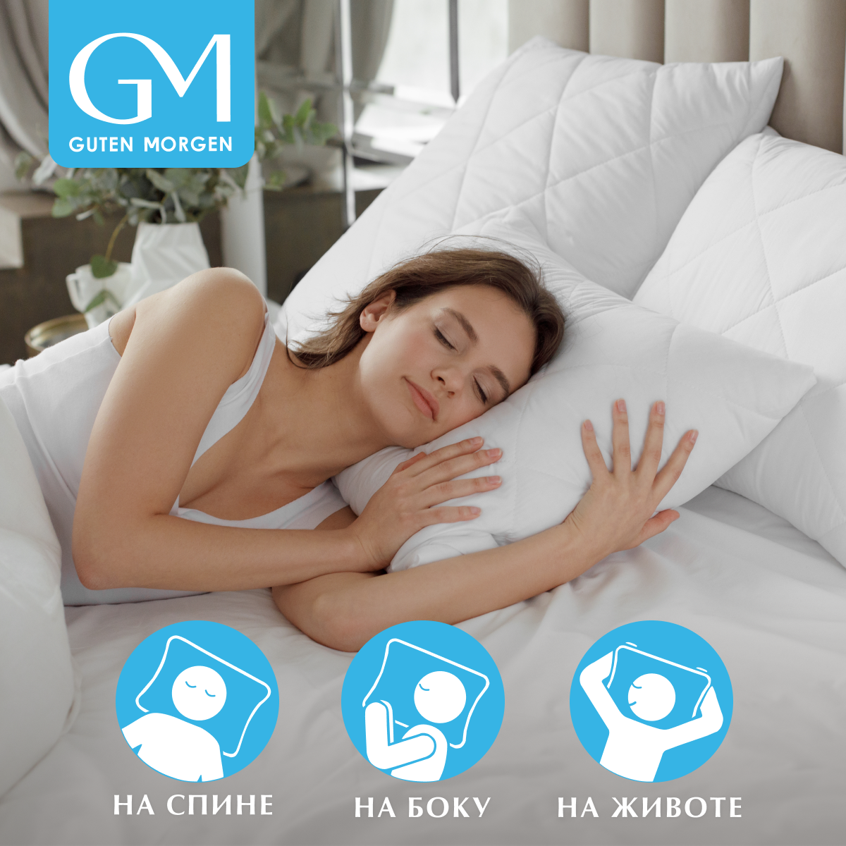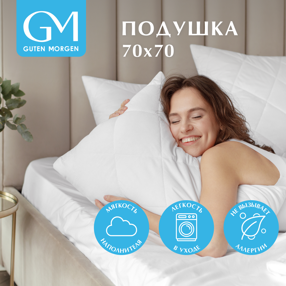 Подушка/70x70/для сна/микрофибра/силиконизированное волокно/Guten Morgen