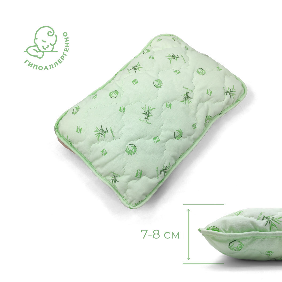 Купить Подушка детская 40х60 см Бамбук Премиум, чехол из Хлопка, гипоаллергенная, для малышей, детей 1 2 3 4 лет, Арт.15554/1