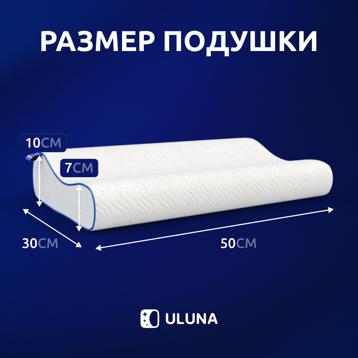 Ортопедическая подушка для сна ULUNA Классика, анатомическая подушка с эффектом памяти 60х40