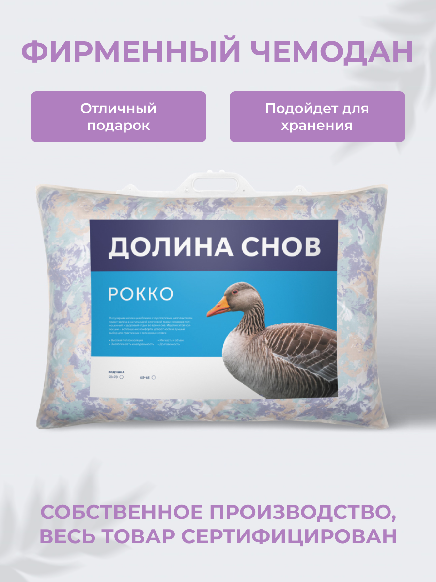 Подушка пух/перо 50x70 см Долина снов "Рокко", чехол - тик (100% хлопок), Ecotex интересное: