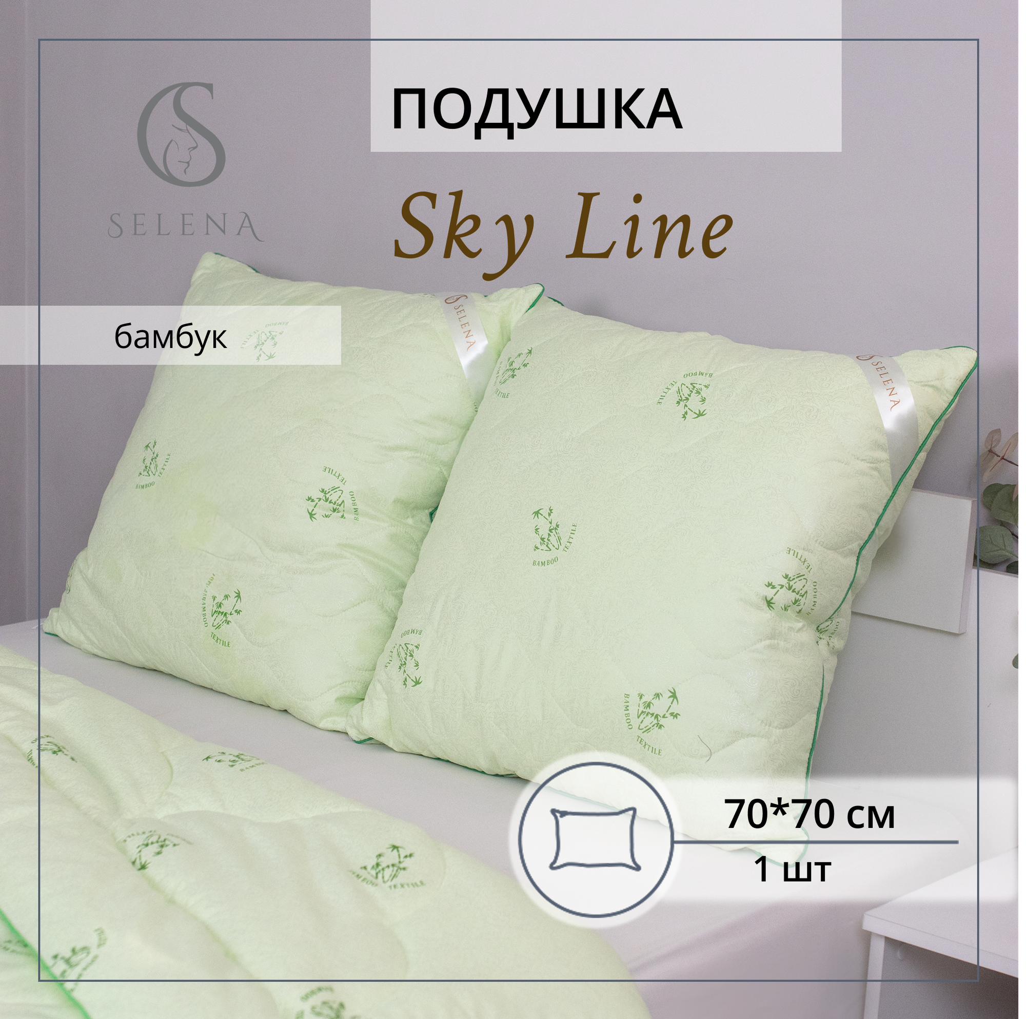 Купить Подушка Sky Line Бамбук, 70х70см, с наполнителем бамбуковое/полиэфирное микроволокно