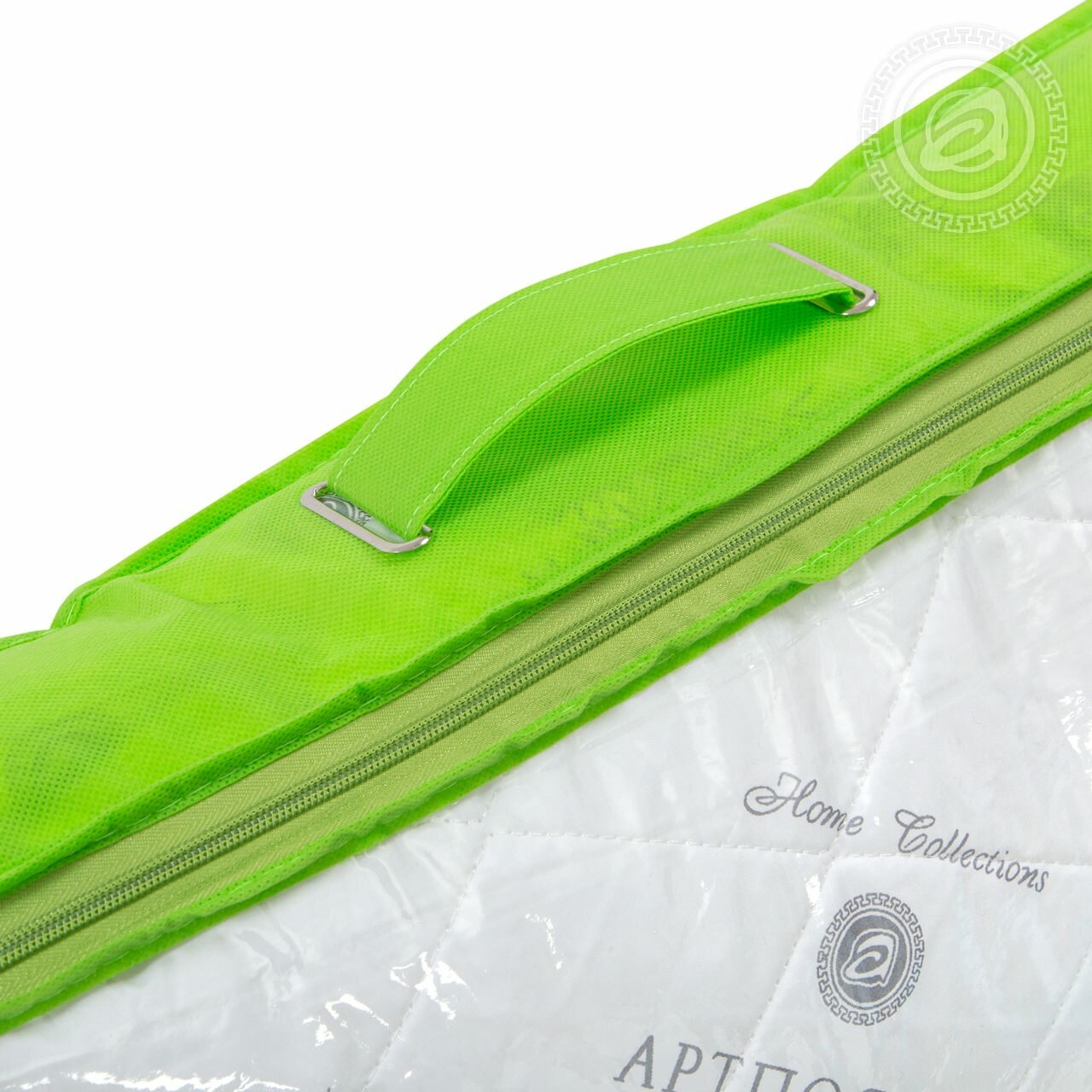 | Дополнительная информация | чехол: стеганый, на молнии + волокно бамбука, с кантом; материал чехла: тик пухоперьевой, 100% хлопок; наполнитель: сверхтонкое полиэфирное силиконизированное микроволокно «Лебяжий пух»; запрещено: гладить, отбеливать; стирка при 30-40 °С с мягкими моющими средствами; сушка на плоскости |