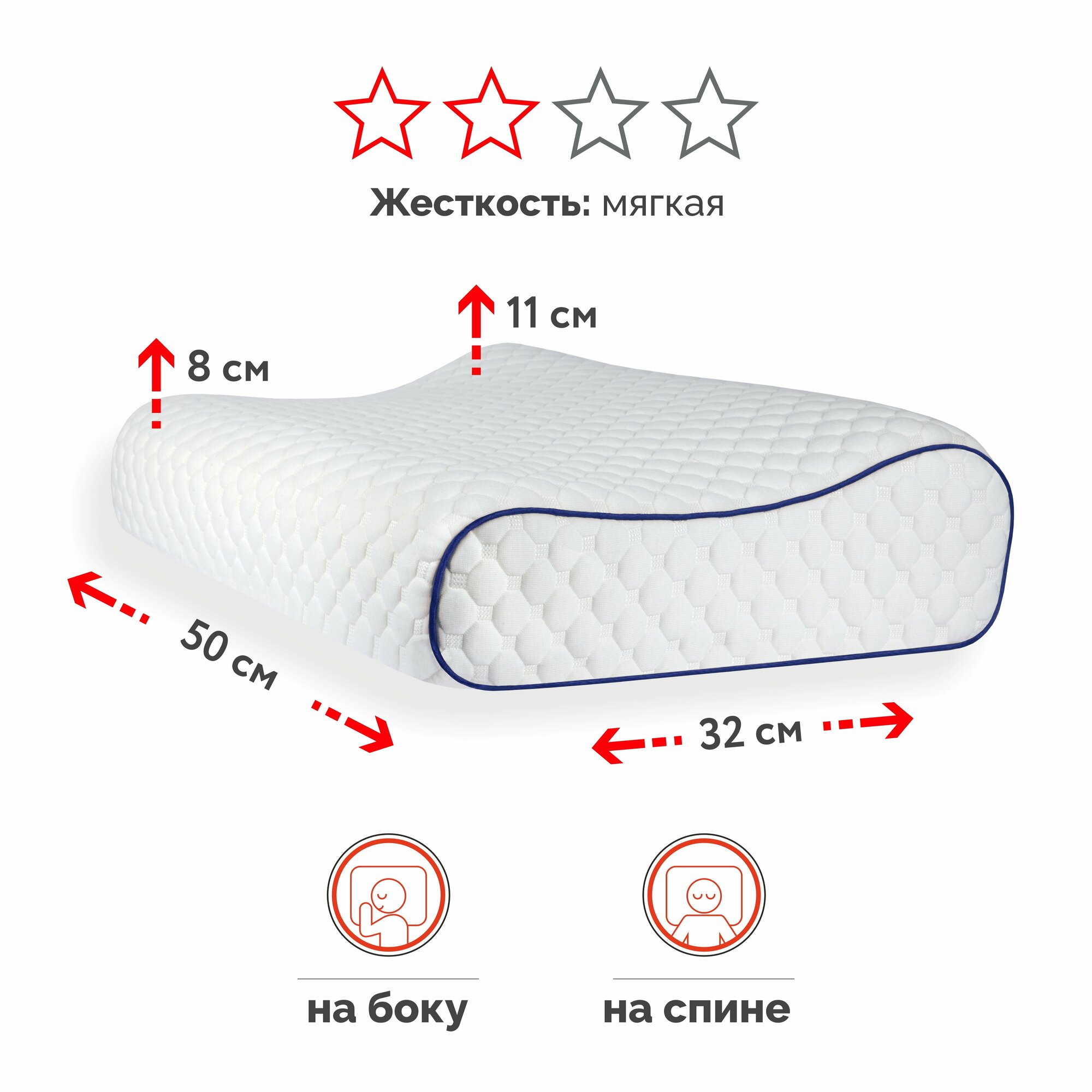 Подушка ортопедическая с эффектом памяти для сна 50х32х8/11 см "Просто Подушка" №28" валики средней жёсткости