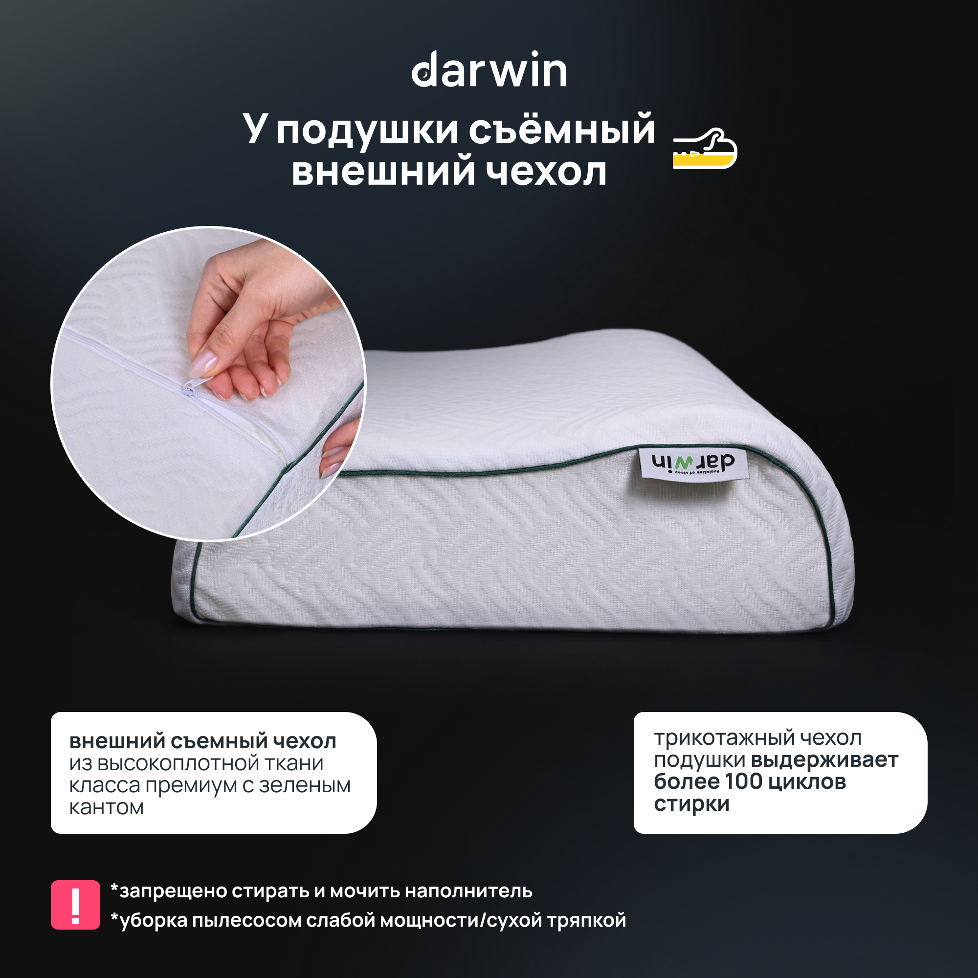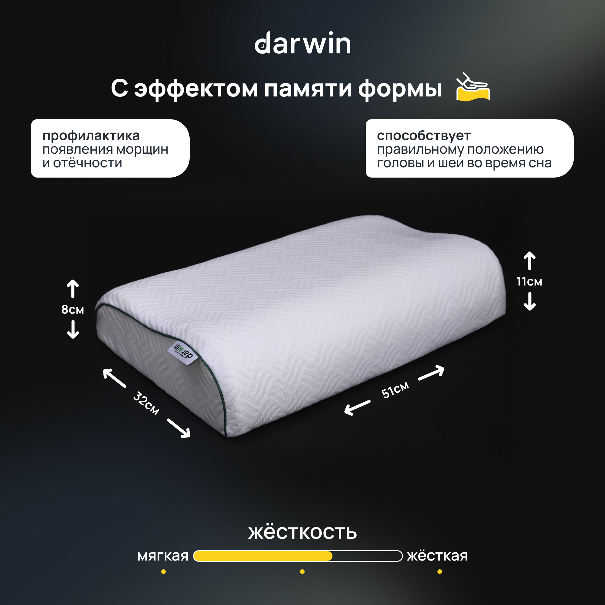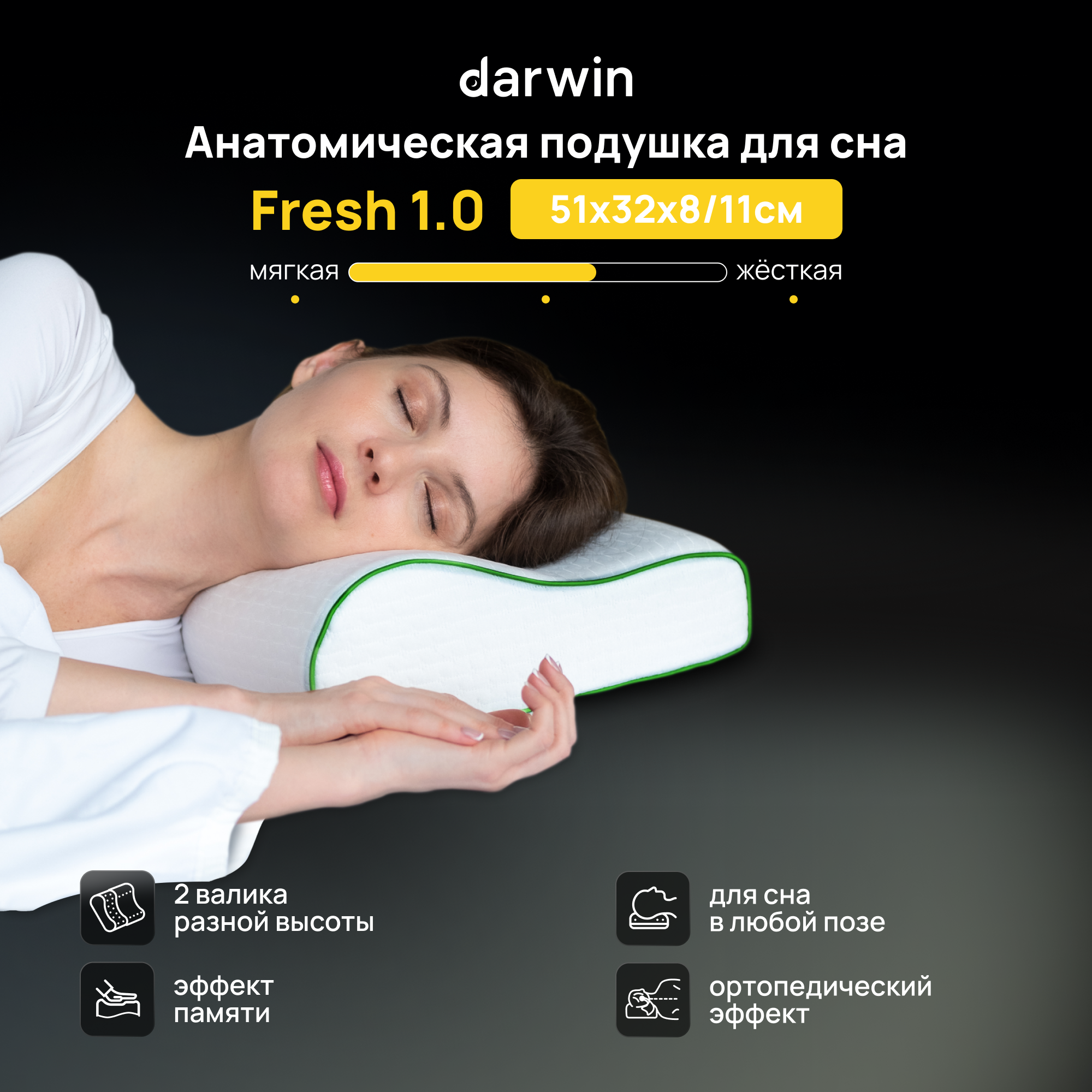 Подушка ортопедическая для сна Darwin Fresh 1.0 c эффектом памяти, анатомическая, 32х51 см, высота 8/11 см интересное: