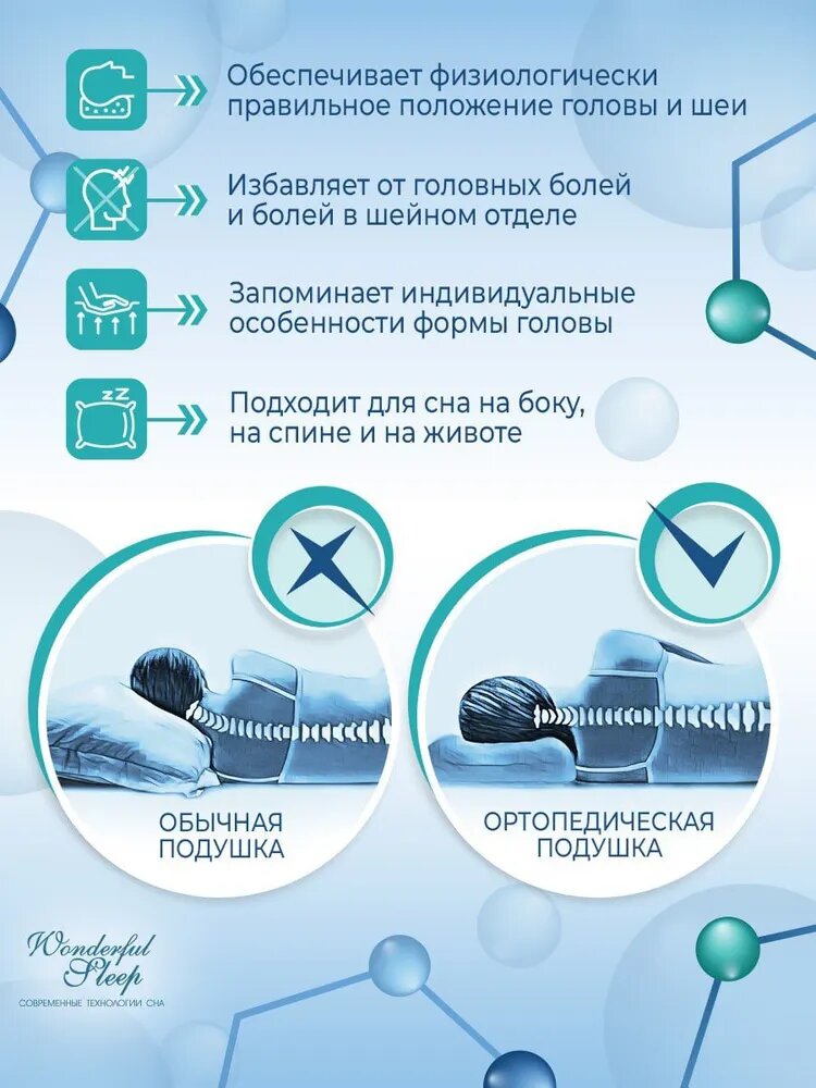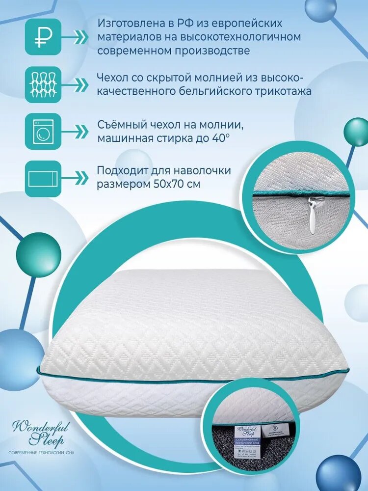 Подушка ортопедическая с эффектом памяти 60х40х10 WONDERFUL SLEEP интересное: