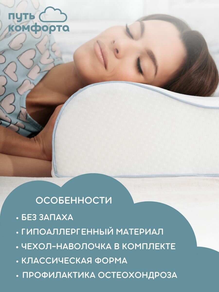 Ортопедическая подушка для сна с эффектом памяти Memory foam "Путь комфорта" 50х30х11/8см с двумя валиками интересное: