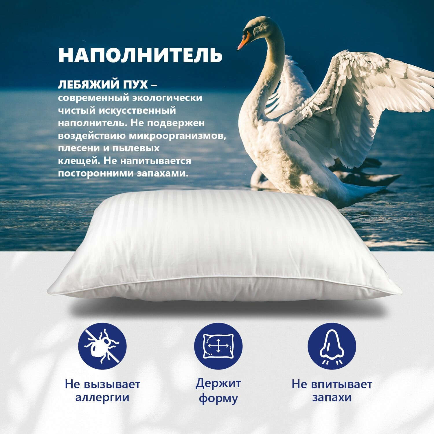 Подушка лебяжий пух Отельная страйп сатин (50х70 см) интересное: