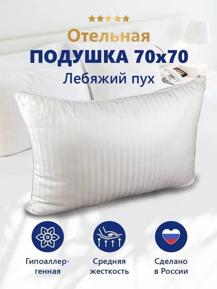 Подушка лебяжий пух Отельная страйп сатин (70х70 см) интересное: