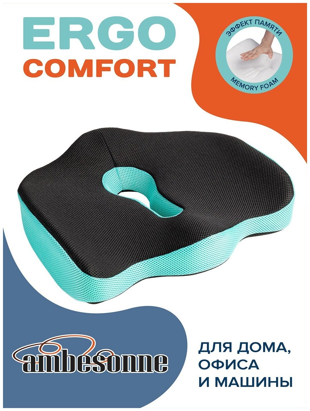 Анатомическая подушка под копчик для офисного кресла 45х40 см Черный/Бирюзовый интересное: