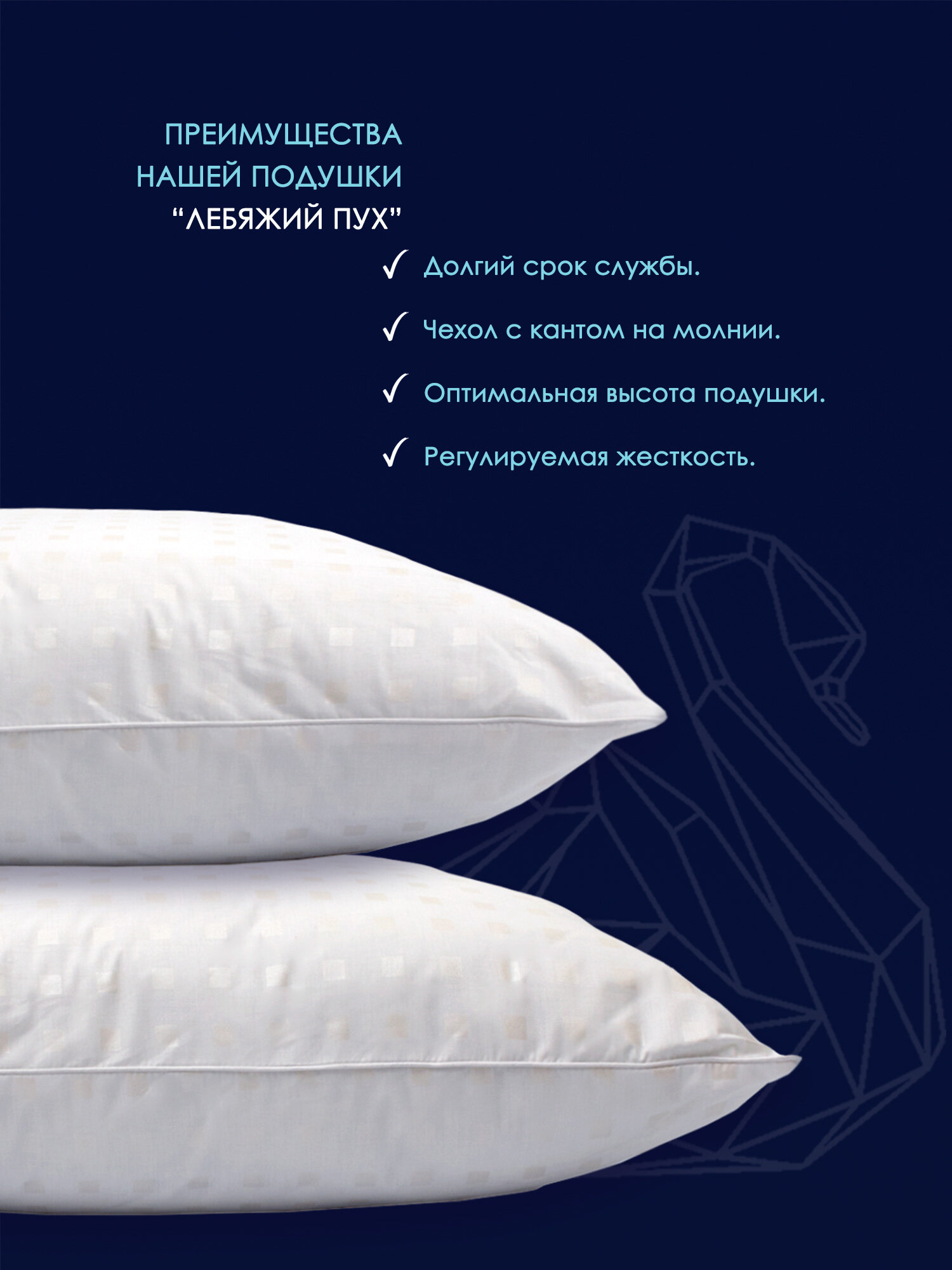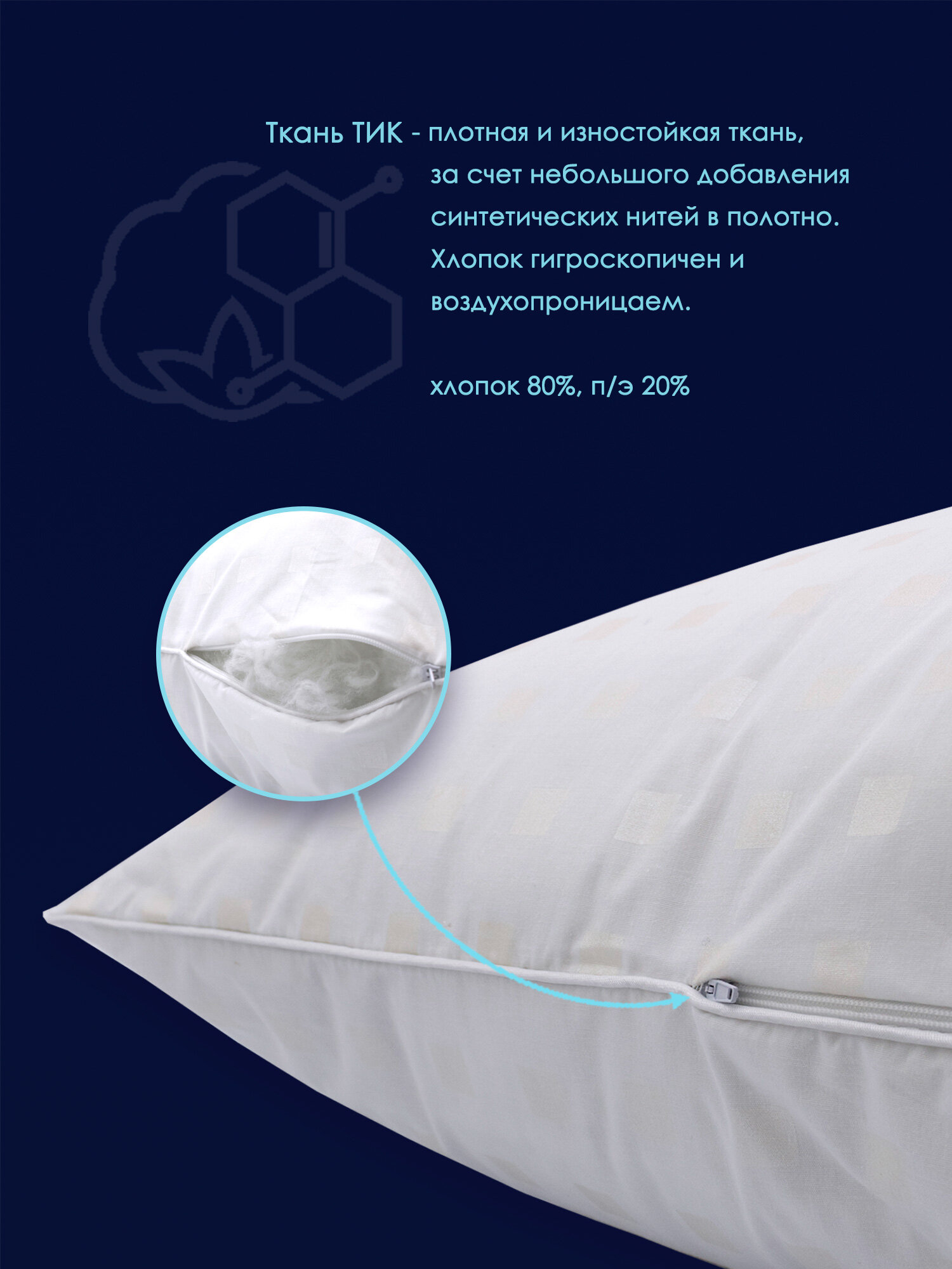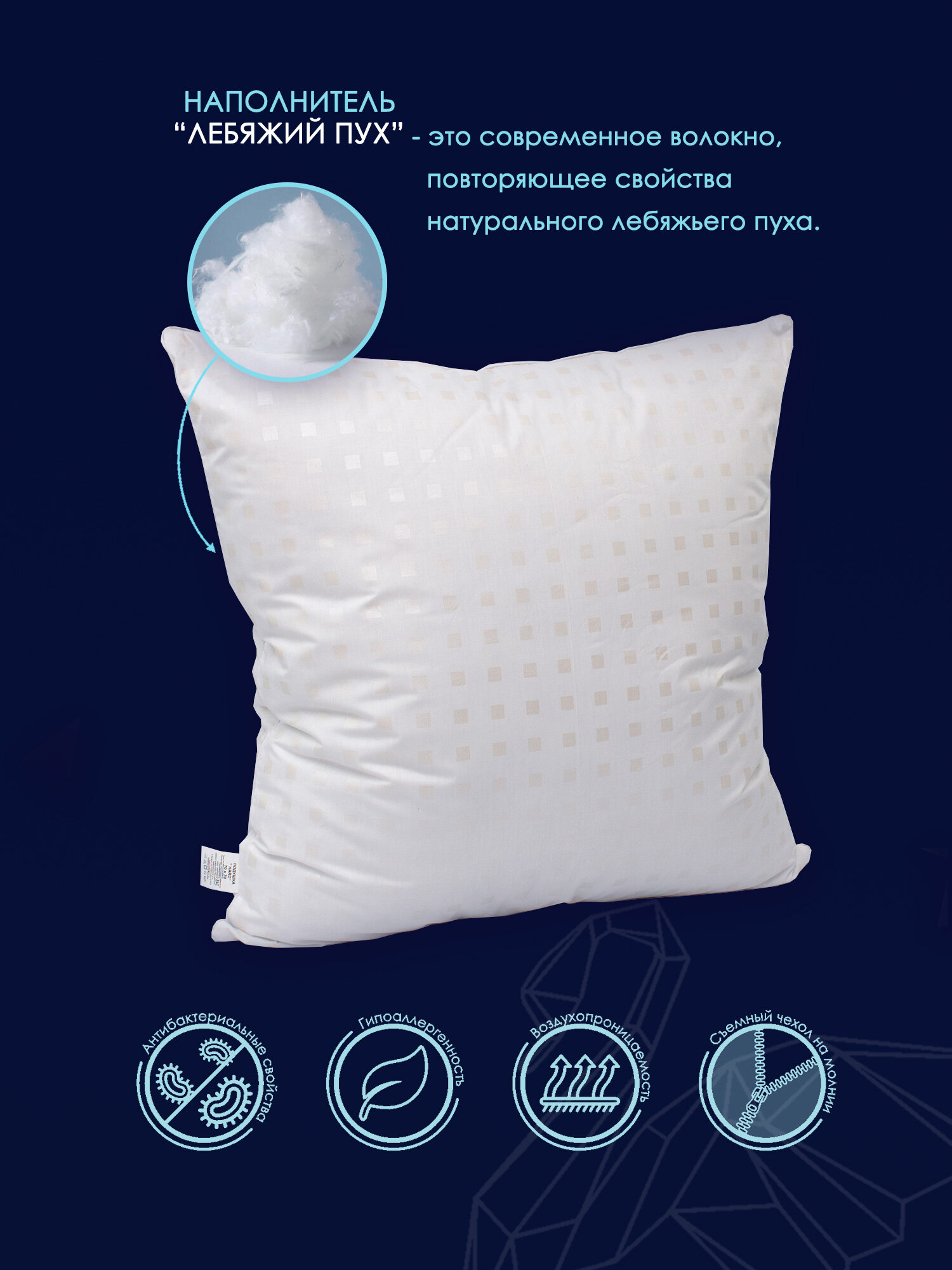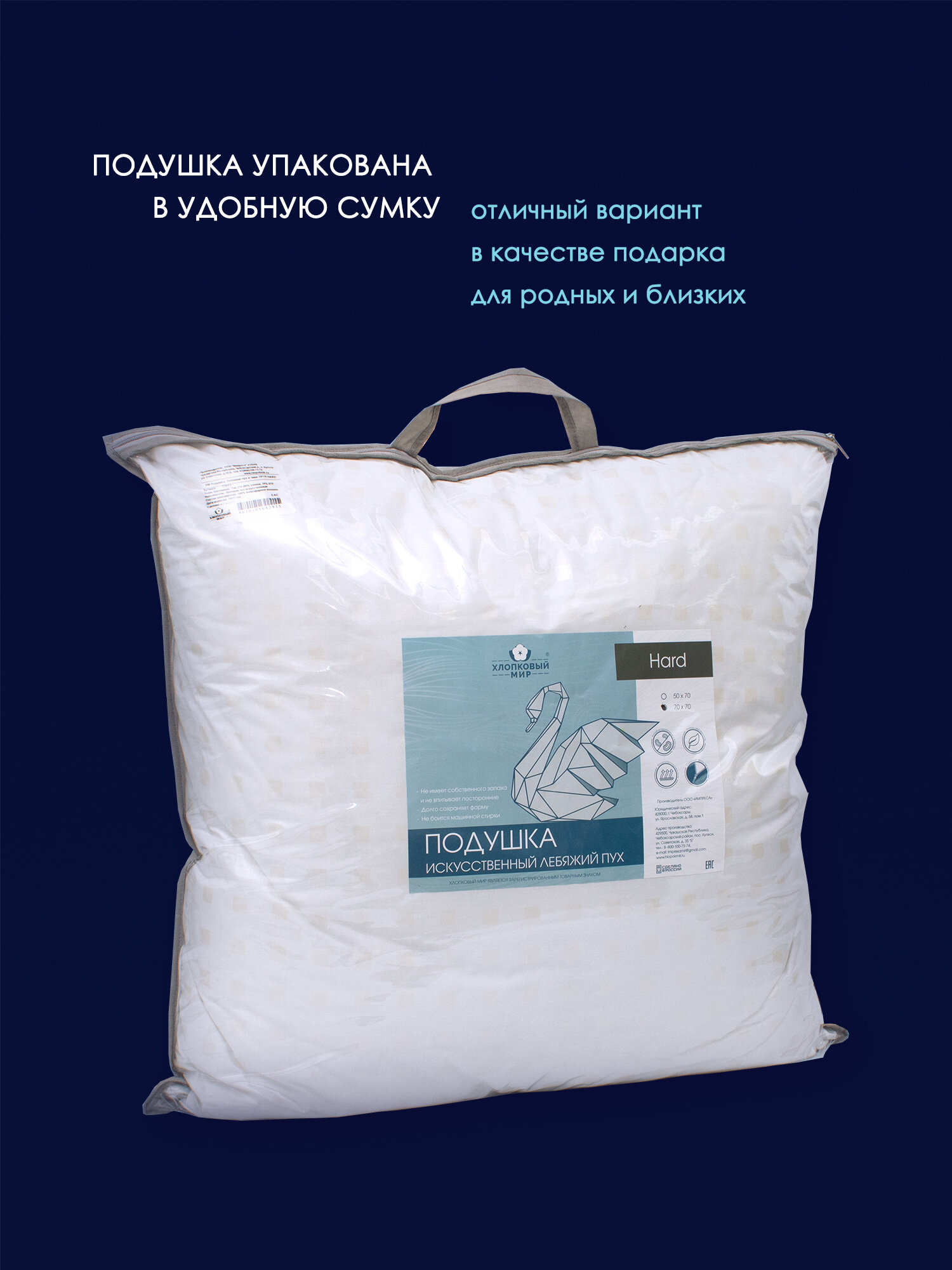 Подушка лебяжий пух 70х70 для мужчин HARD Хлопковый Мир подушка в тике на молнии интересное: