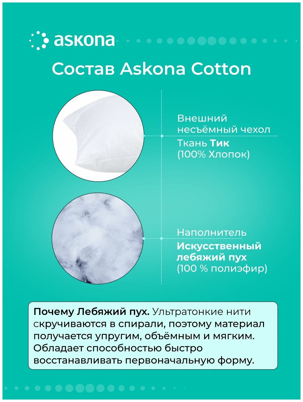 Подушка Askona Cotton 70x70cm интересное: