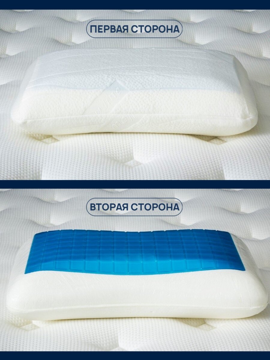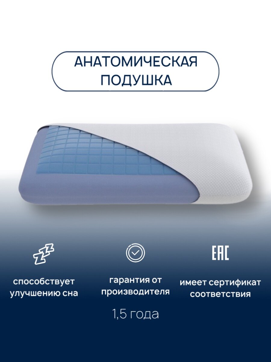 Подушка для сна (анатомическая) с охлаждающим гелем и эффектом памяти, съемным трикотажным чехлом, для взрослых, 41х61х13 см интересное: