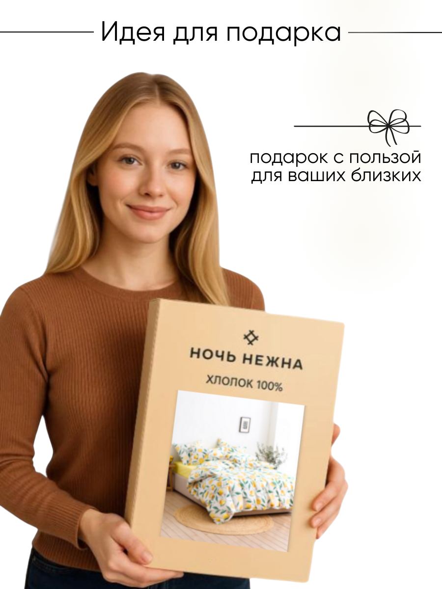 Постельное белье Ночь Нежна, Лимоны, поплин, евро, наволочки 70х70, 100% хлопок интересное:
