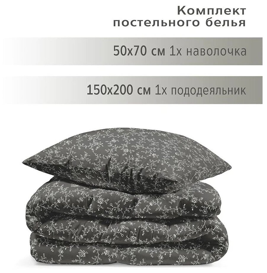 Купить Комплект постельного белья 1 спальный YERRNA, наволочка 50х70 1шт, перкаль, темно-серый, с2081шв/204871
