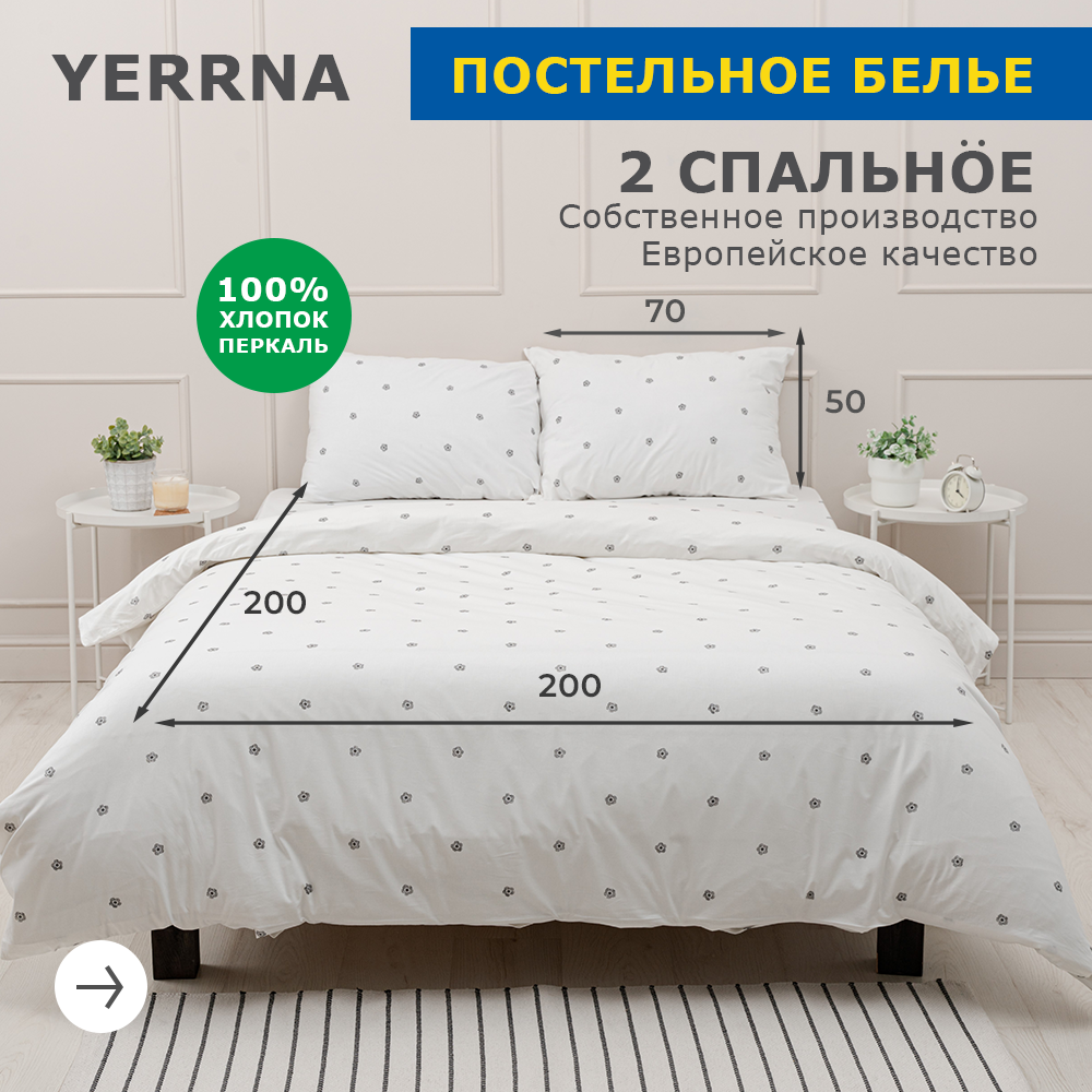 Комплект постельного белья, 2 спальный YERRNA, наволочки 50х70 2шт, перкаль
