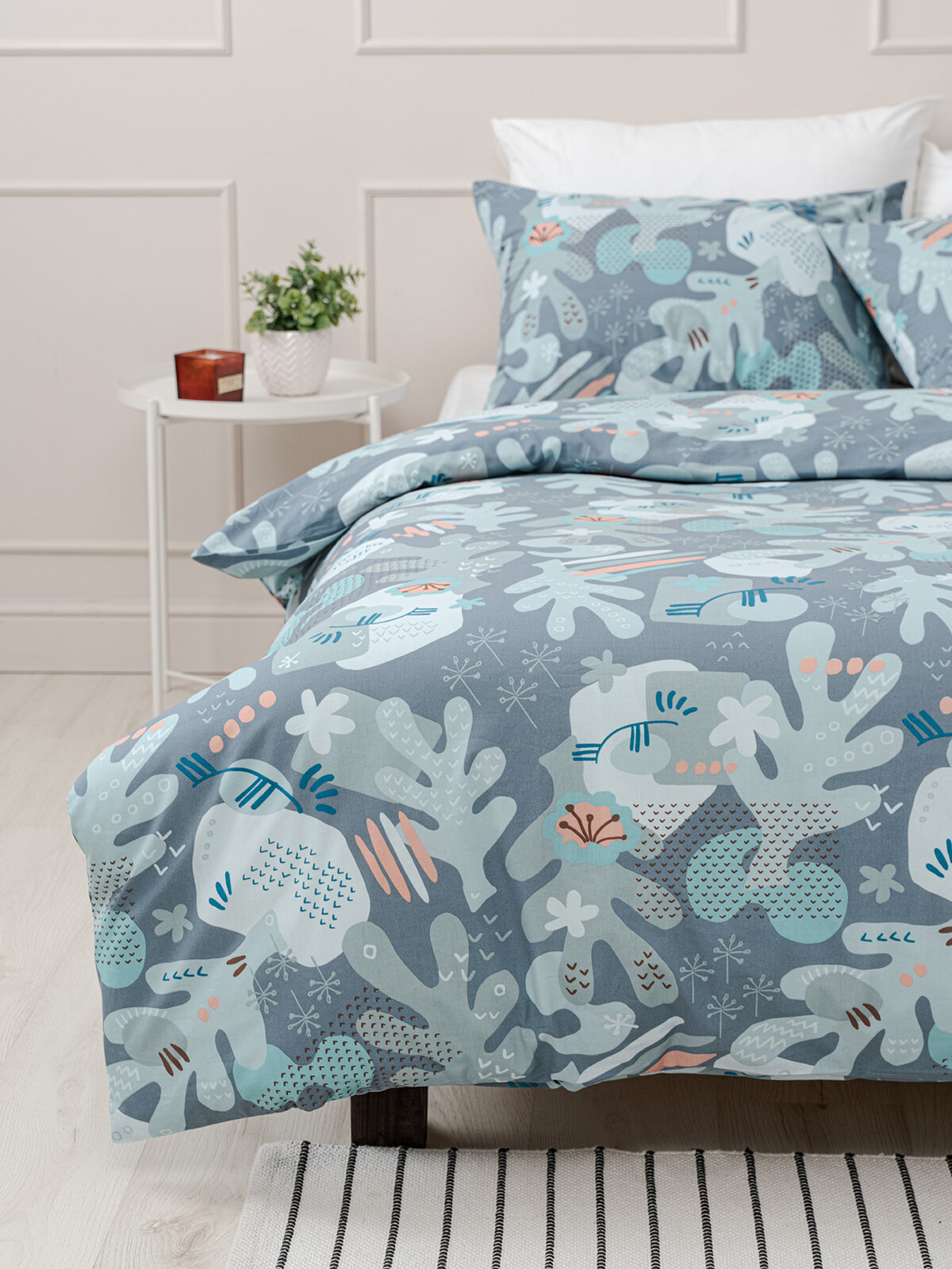 Комплект постельного белья, 2 спальный YERRNA, наволочки 50х70 2шт, перкаль, серо-голубой цветы, с2082шв/209861