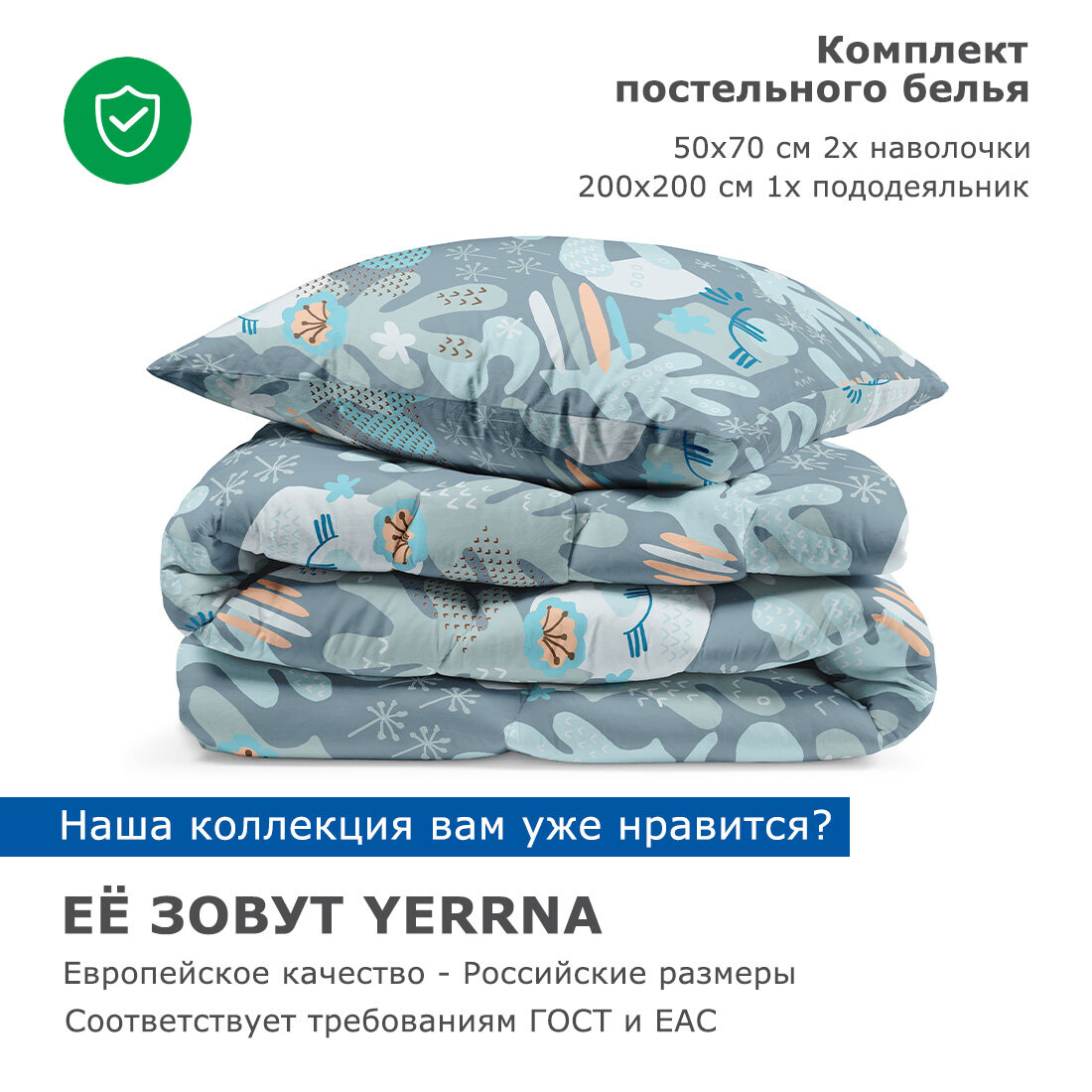 СохранитьКомплект постельного белья, 2 спальный YERRNA, наволочки 50х70 2шт, перкаль, голубой, с2082шв/211892 интересное: